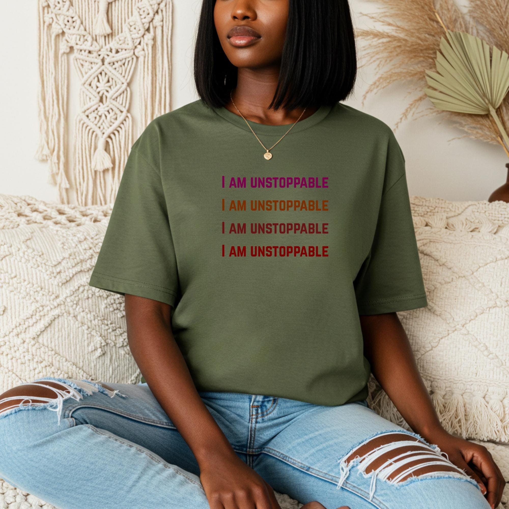 Order your “I Am Unstoppable” shirt today — and let your mindset do the talking!