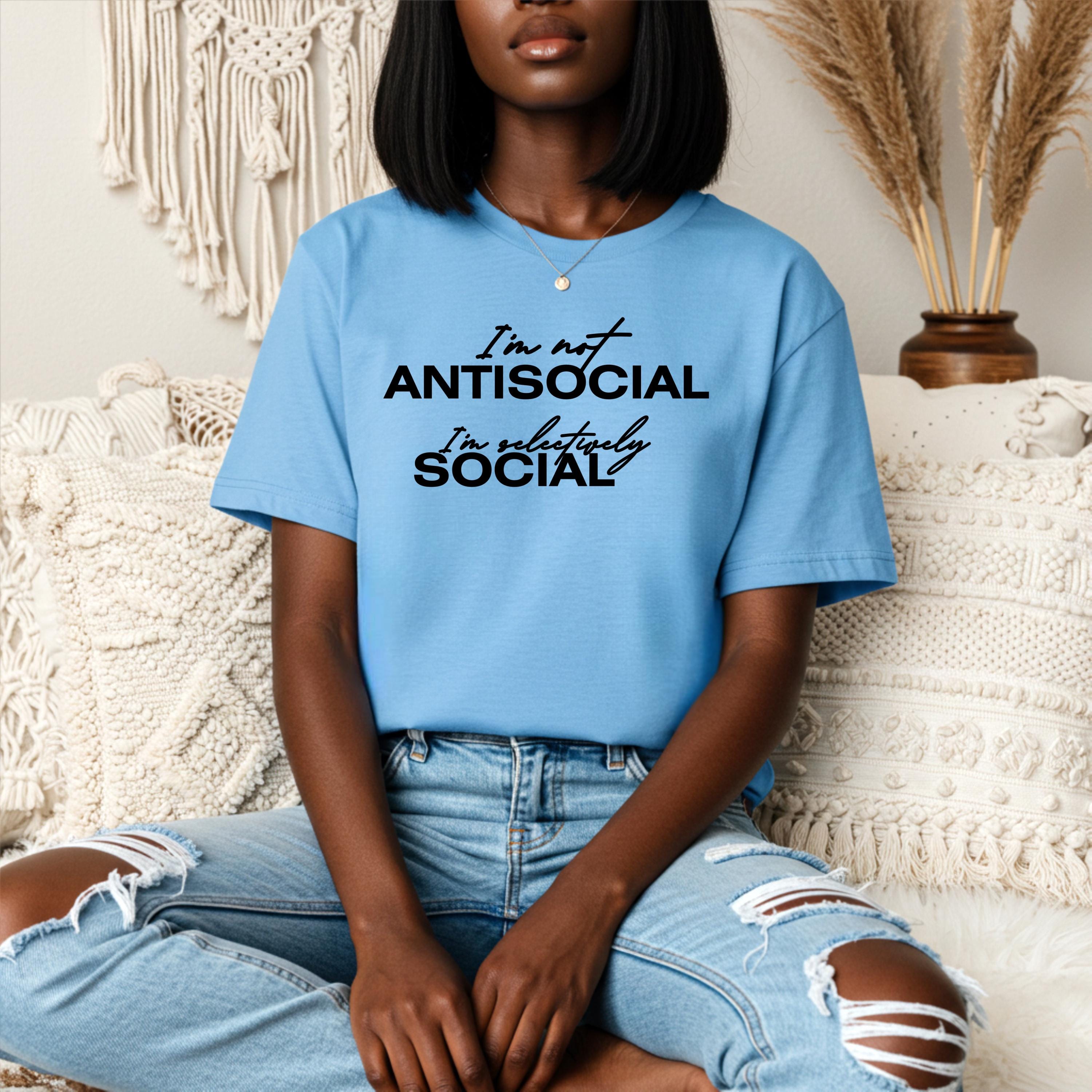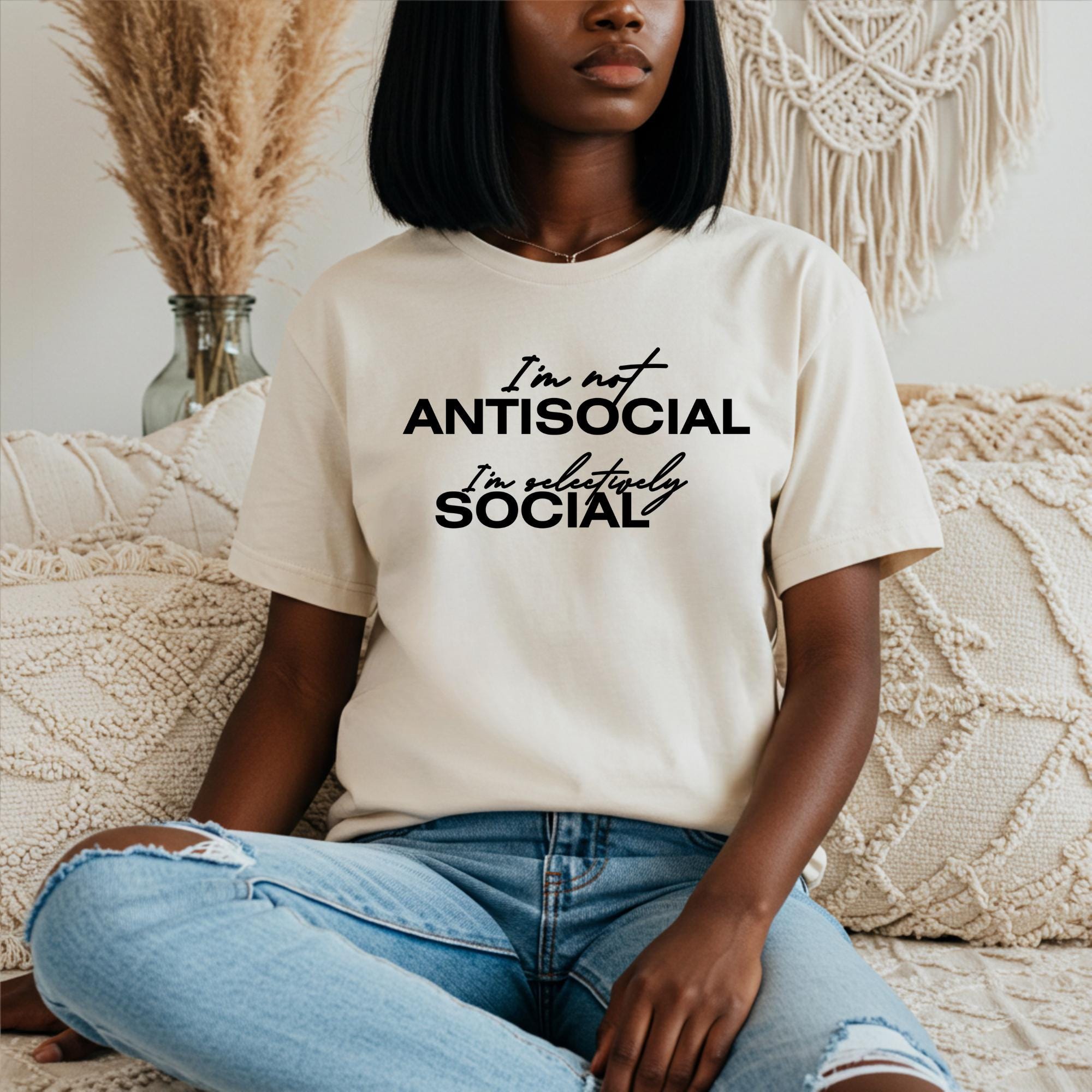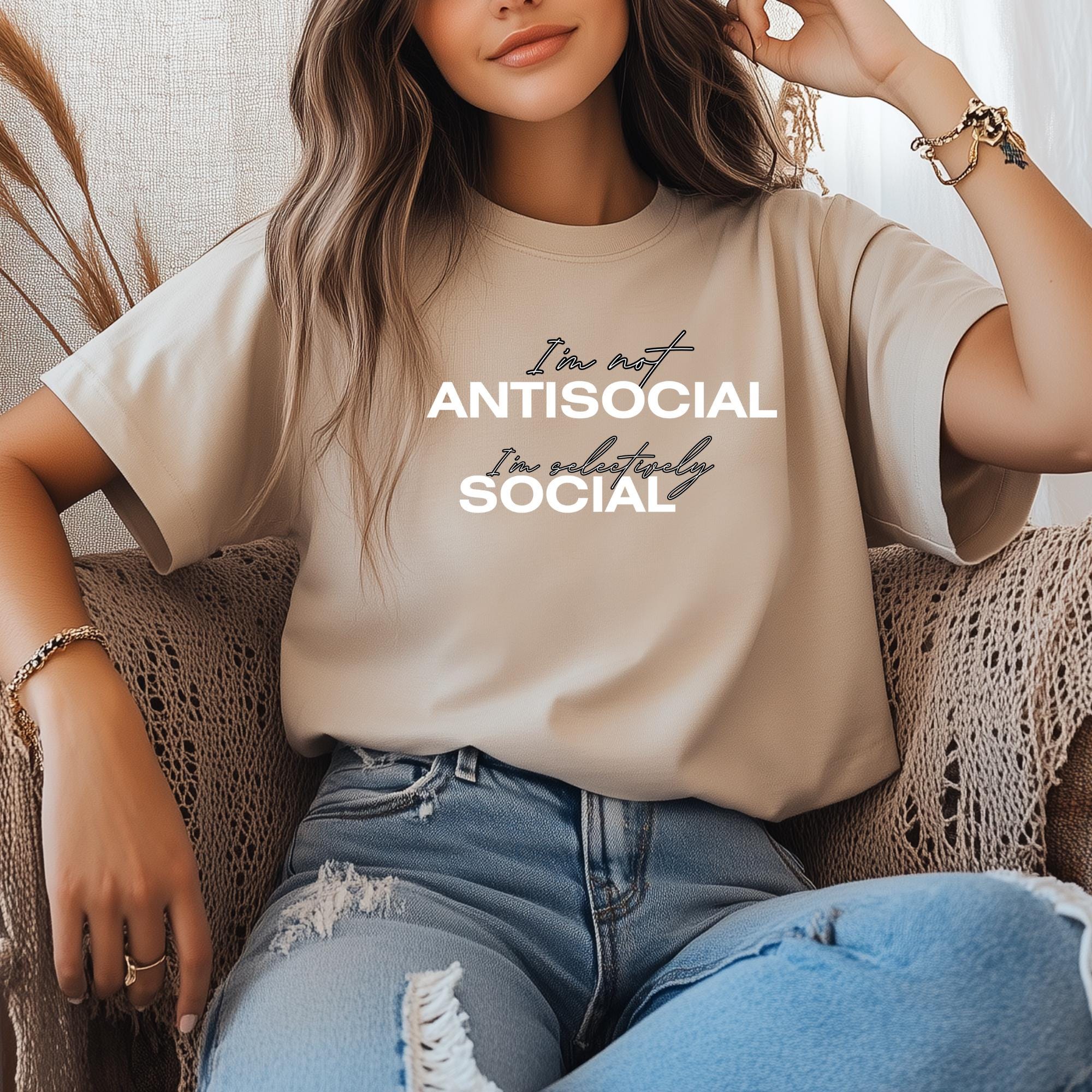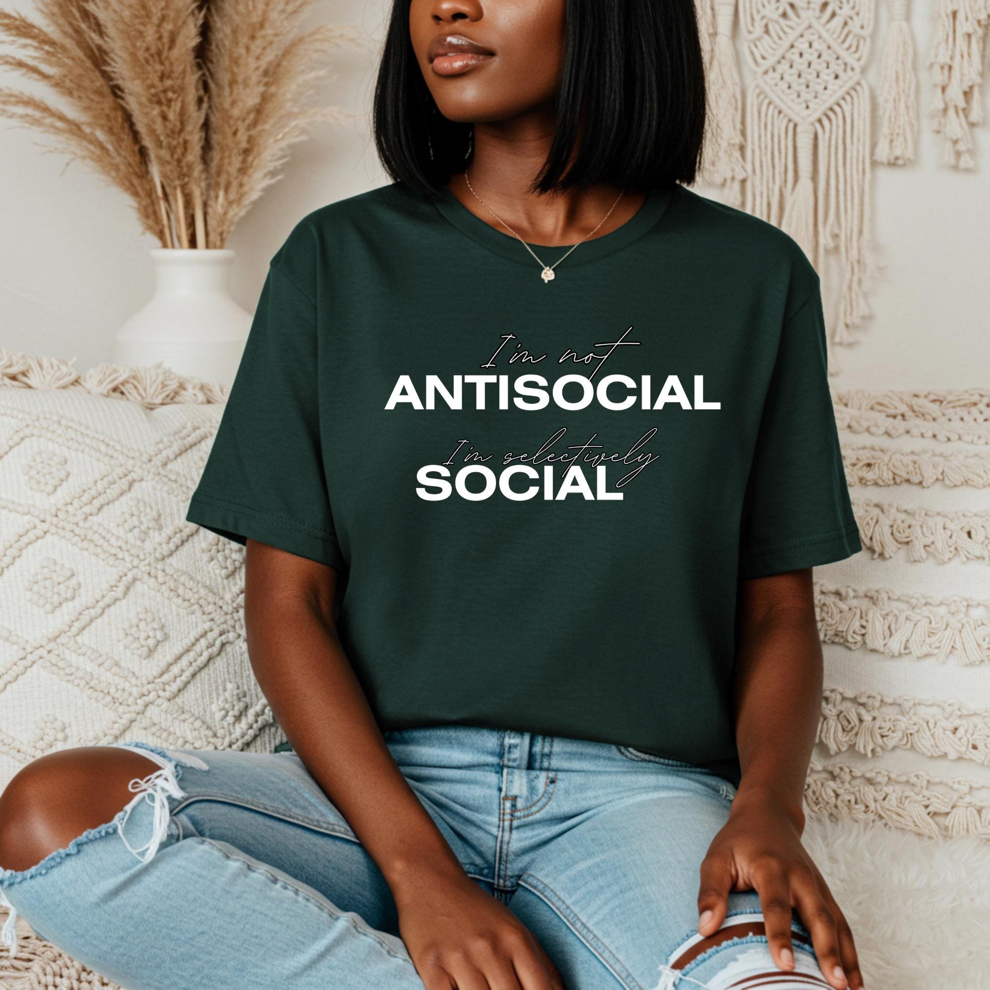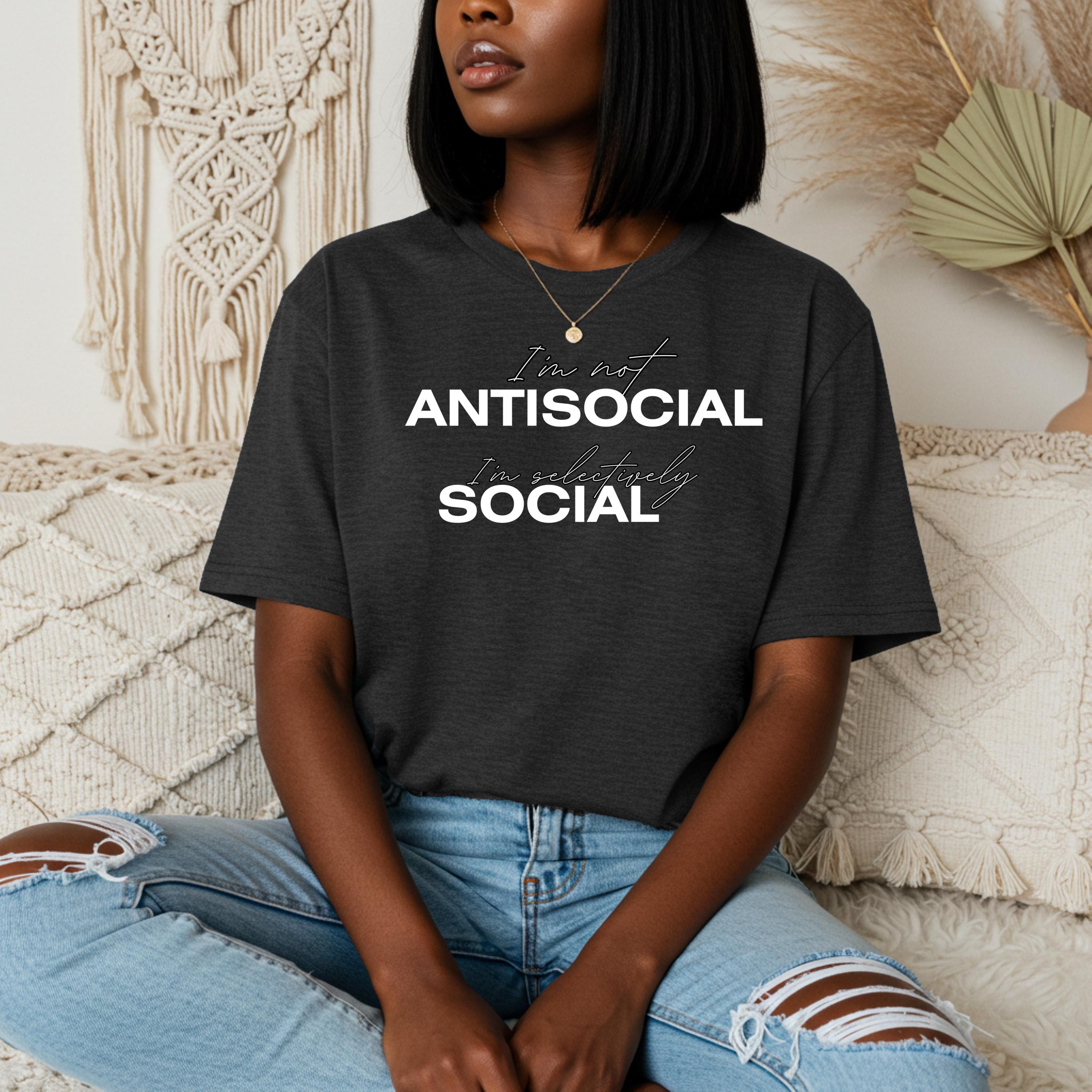Grab your “I’m Not Antisocial, I’m Selectively Social” shirt today and wear your introvert pride with style!