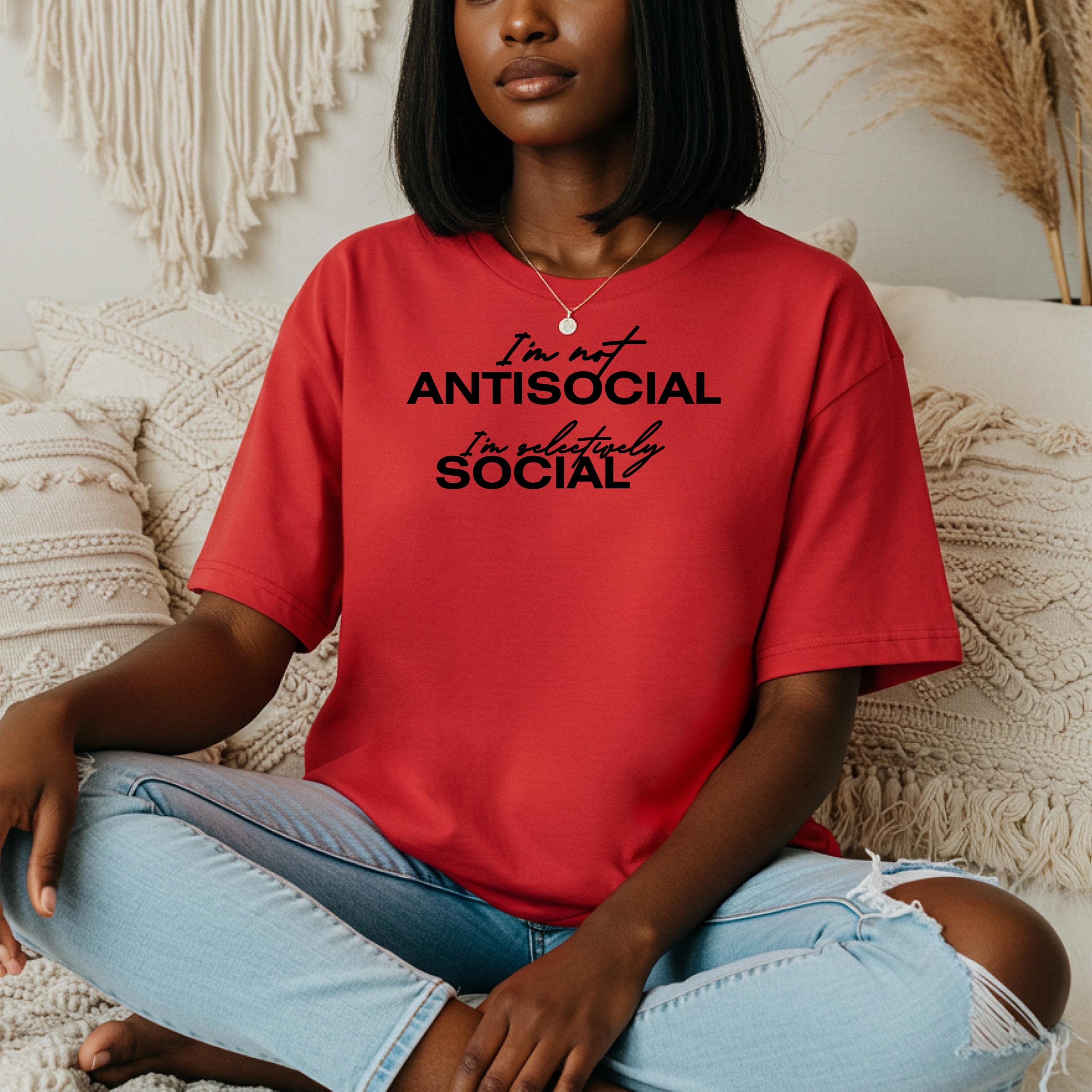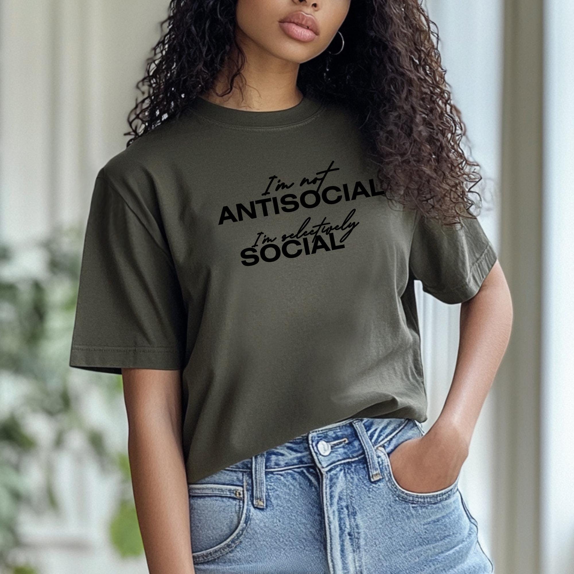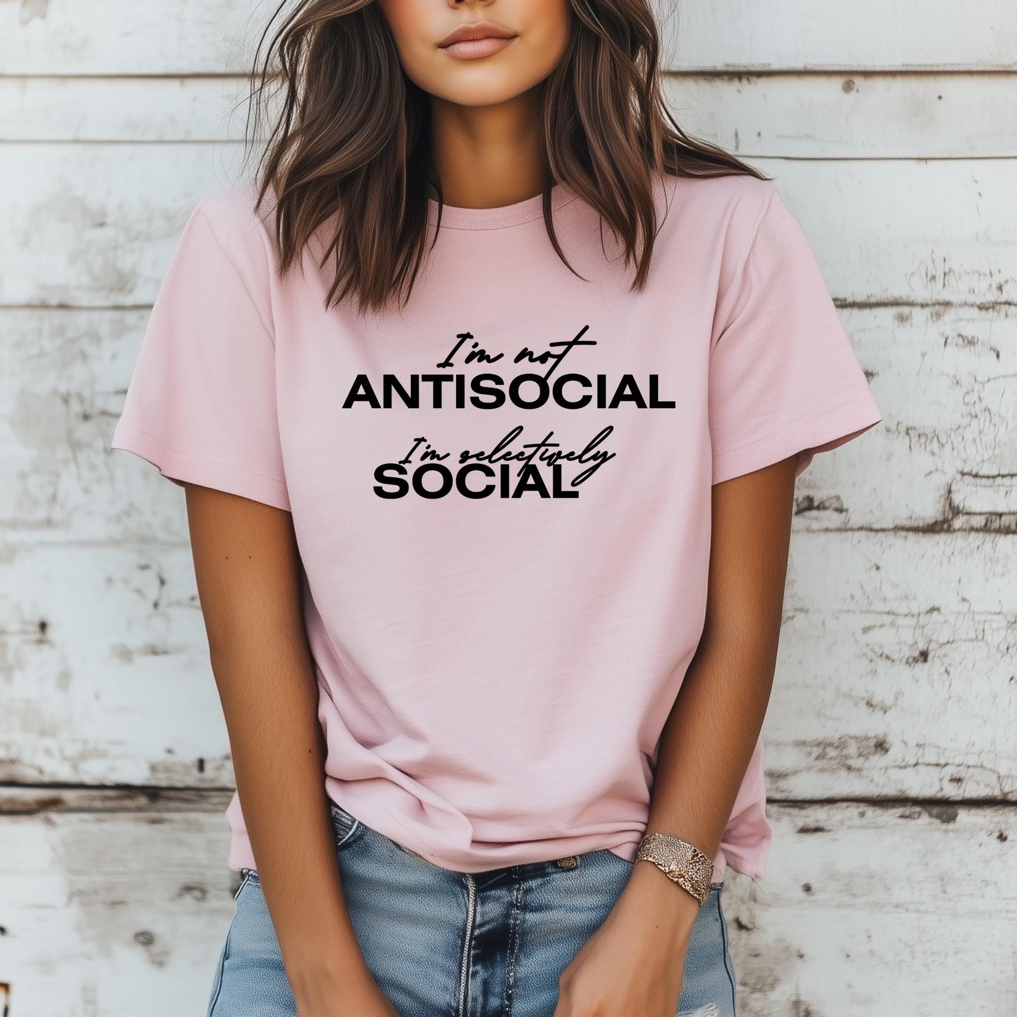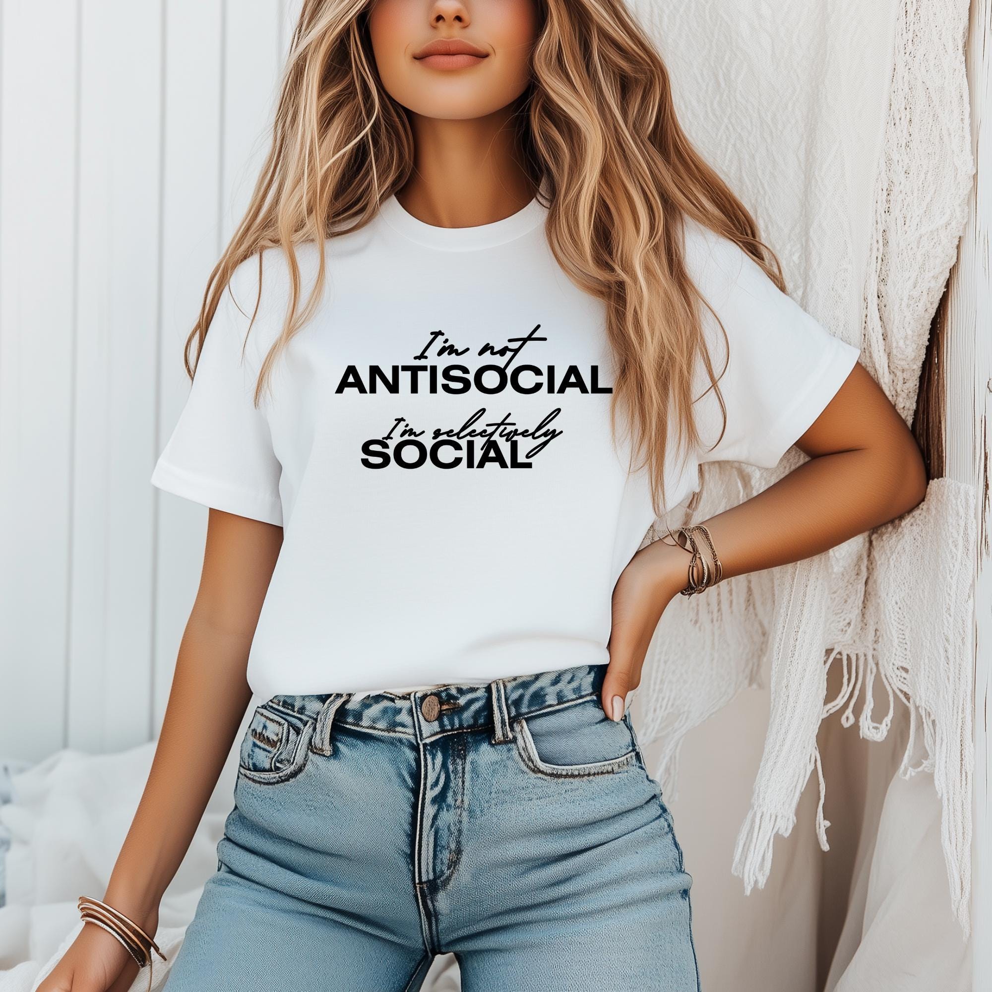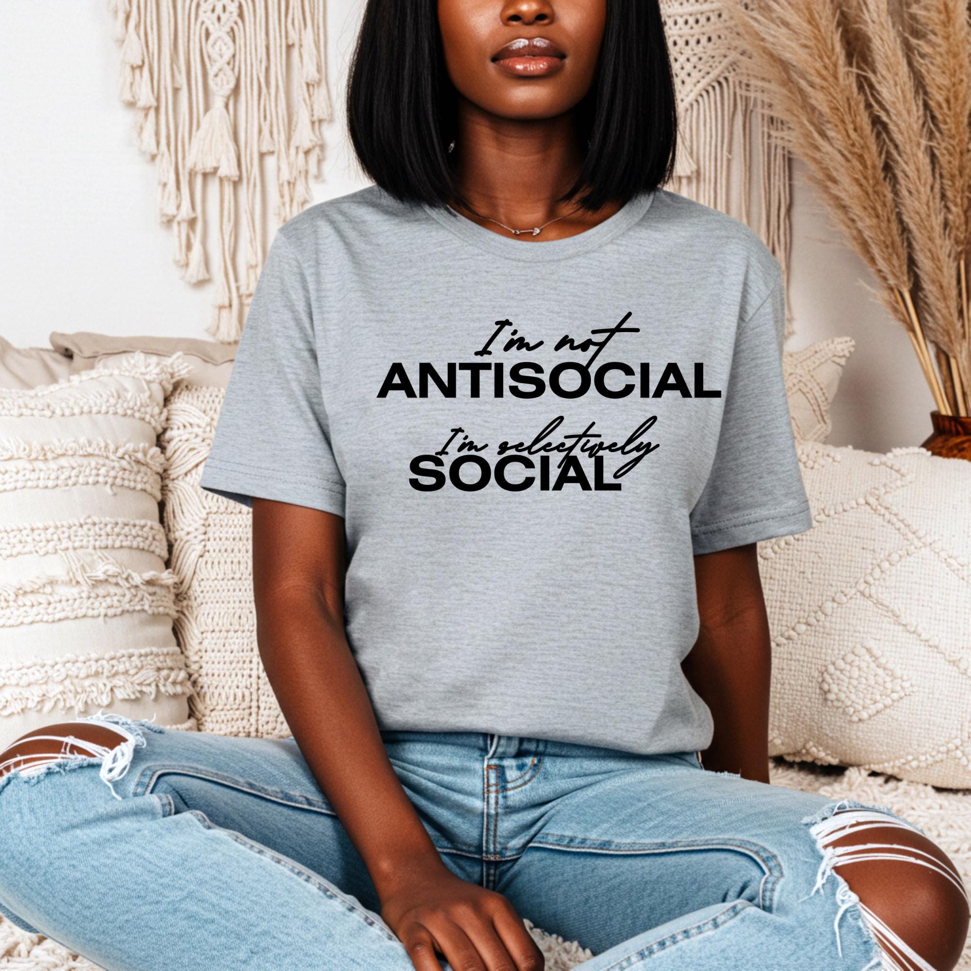 Grab your “I’m Not Antisocial, I’m Selectively Social” shirt today and wear your introvert pride with style!