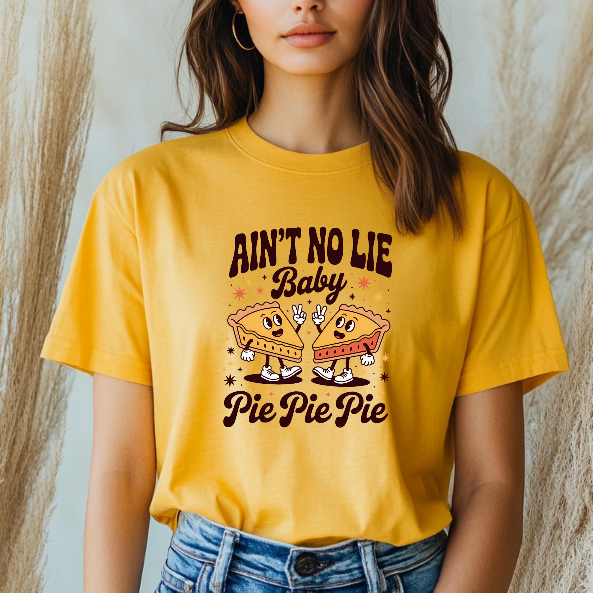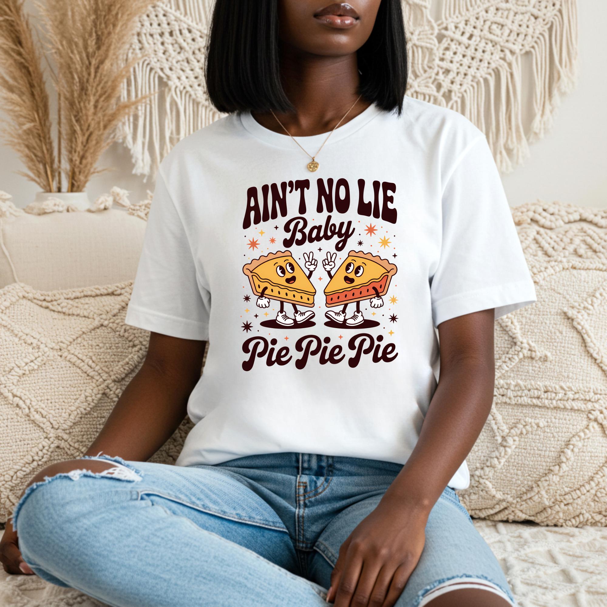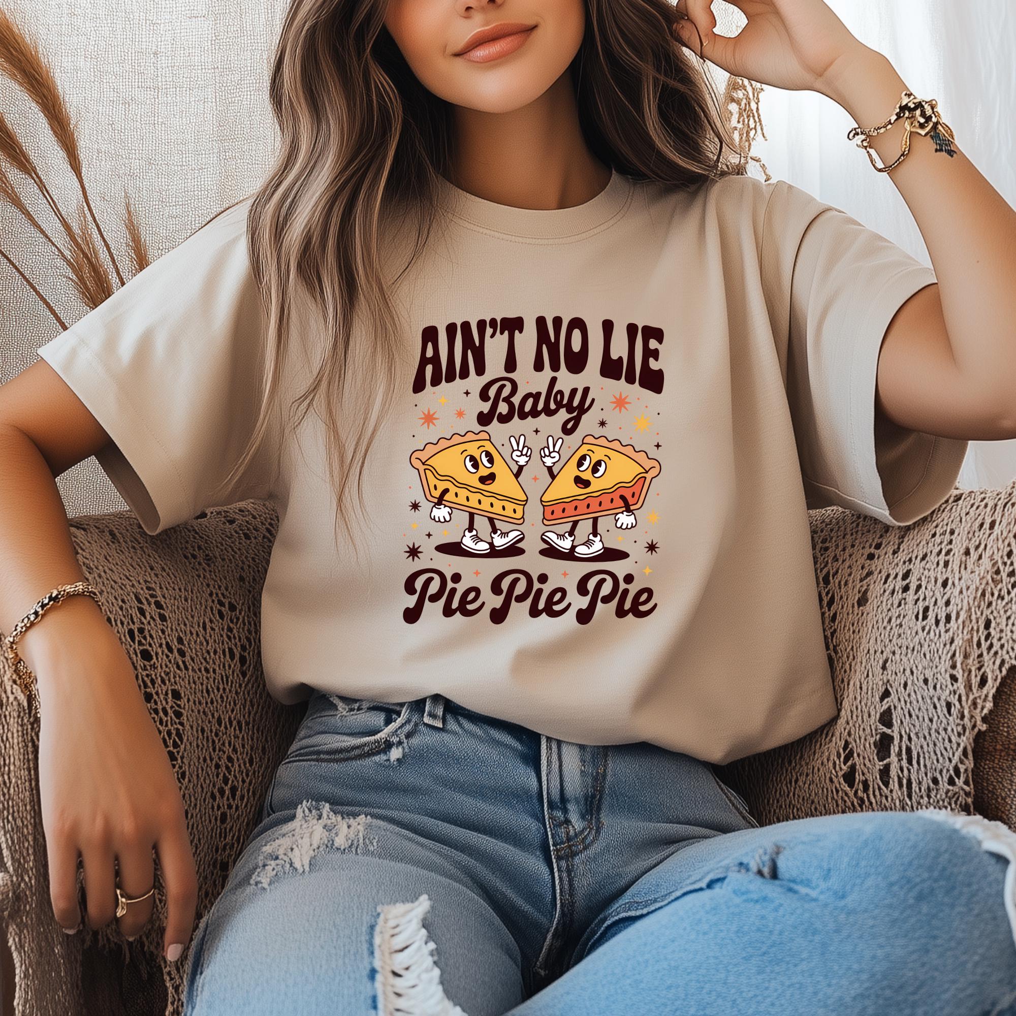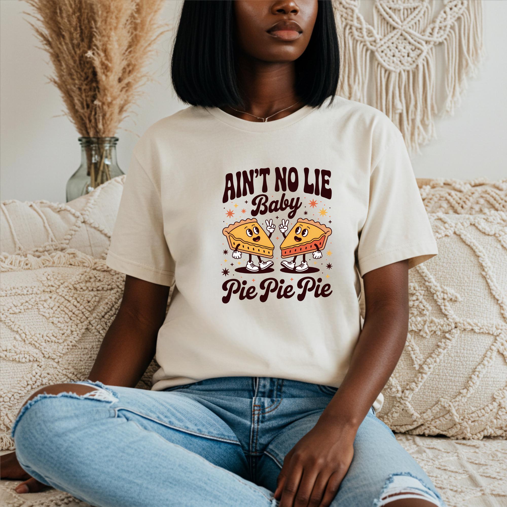Turn your Thanksgiving into a throwback jam with this playful “Ain’t No Lie Baby, Pie Pie Pie” tee — a pun every ’90s pop fan and pie lover will appreciate! Perfect for Friendsgiving, cozy fall weekends, or baking your favorite pumpkin pie, this shirt serves up equal parts humor and holiday cheer.