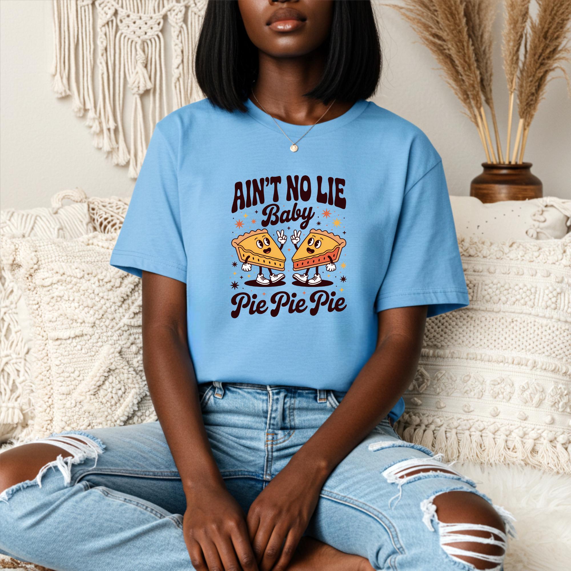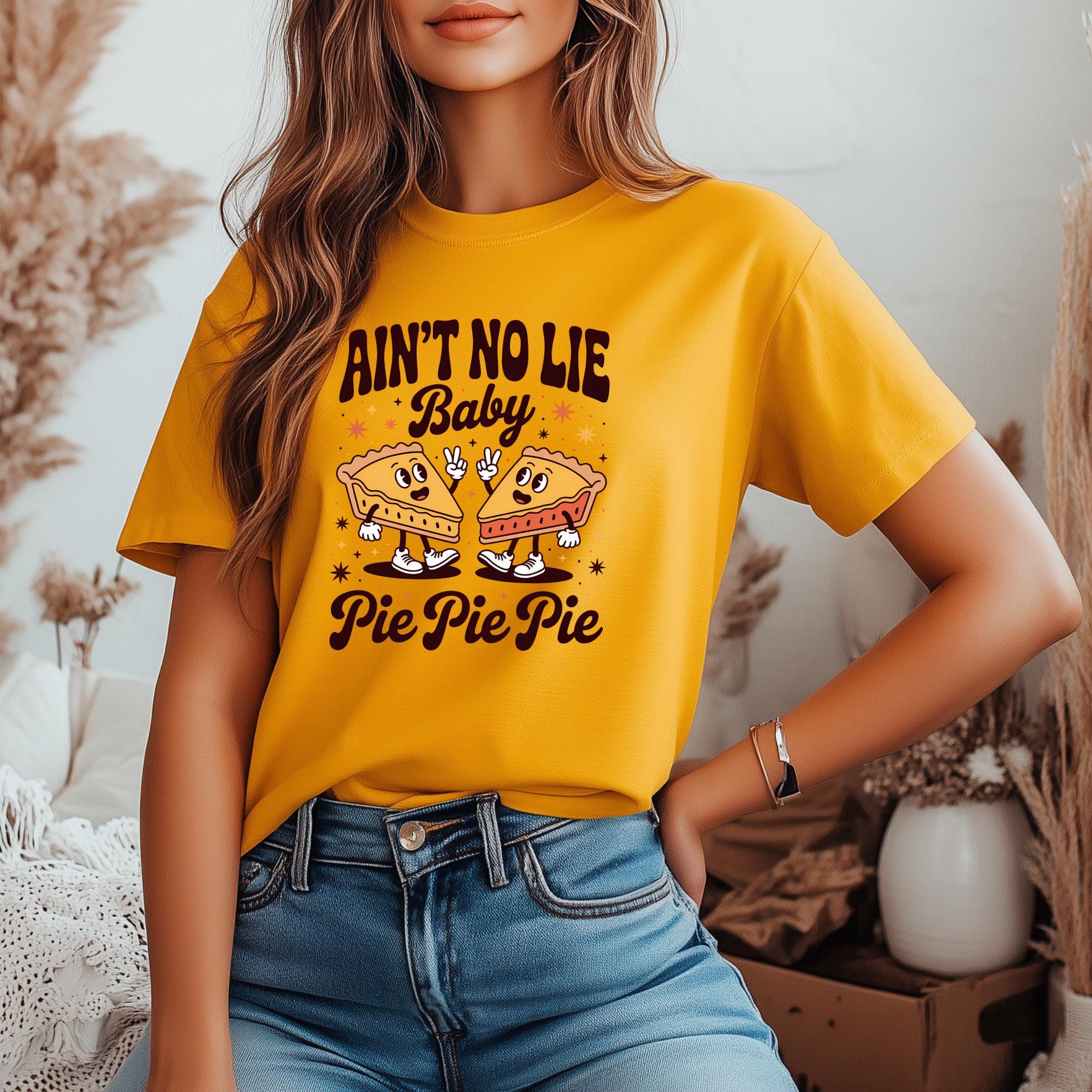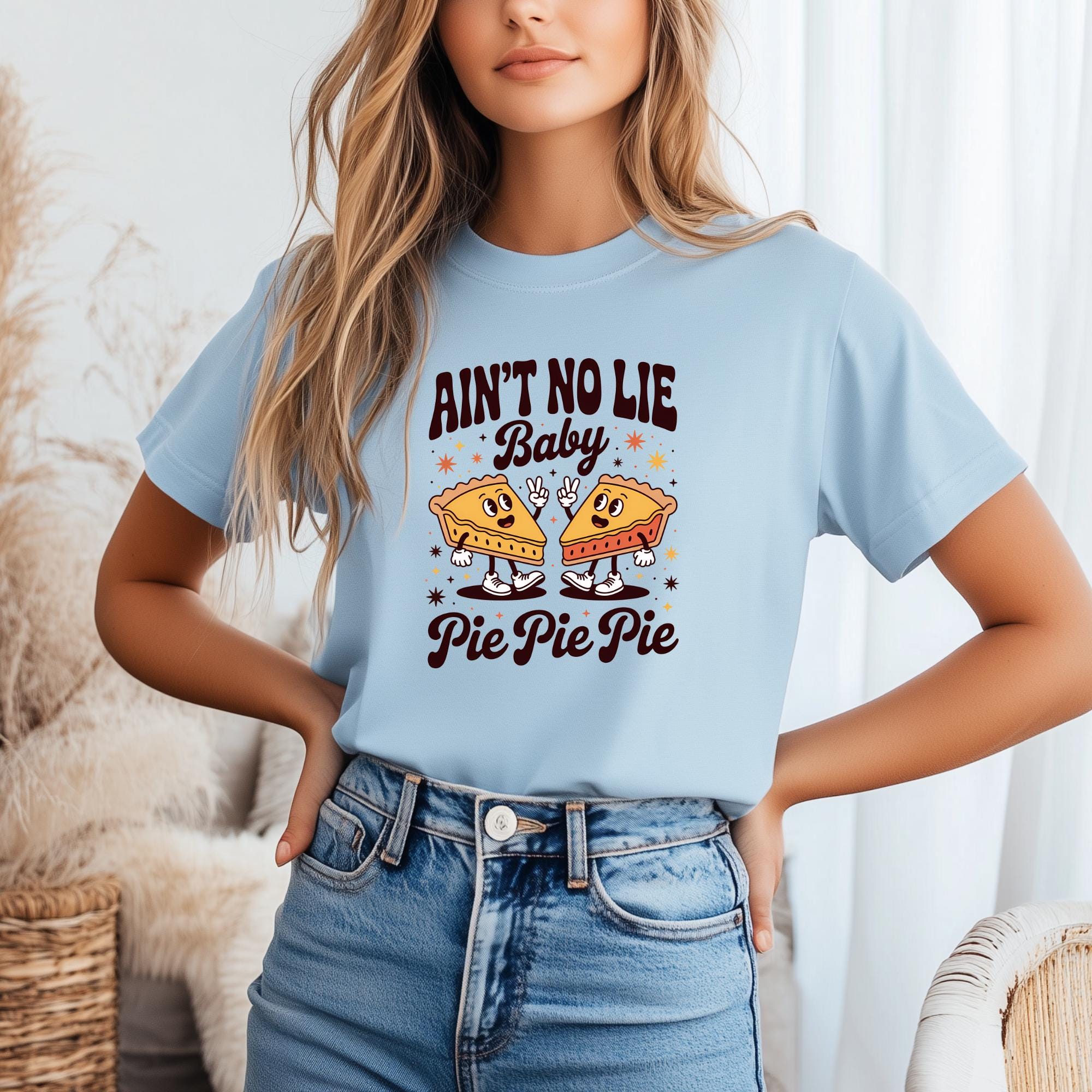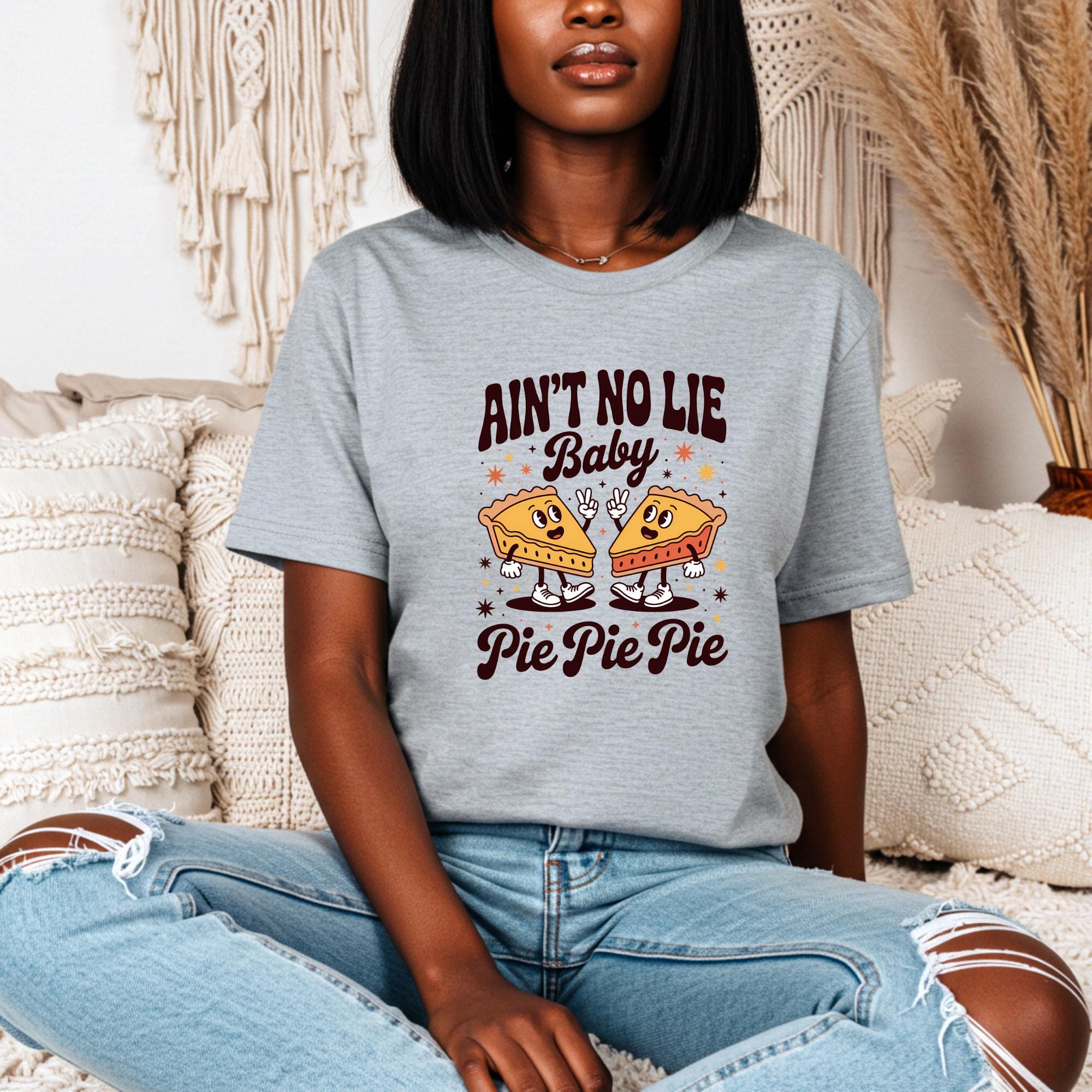 Turn your Thanksgiving into a throwback jam with this playful “Ain’t No Lie Baby, Pie Pie Pie” tee — a pun every ’90s pop fan and pie lover will appreciate! Perfect for Friendsgiving, cozy fall weekends, or baking your favorite pumpkin pie, this shirt serves up equal parts humor and holiday cheer.