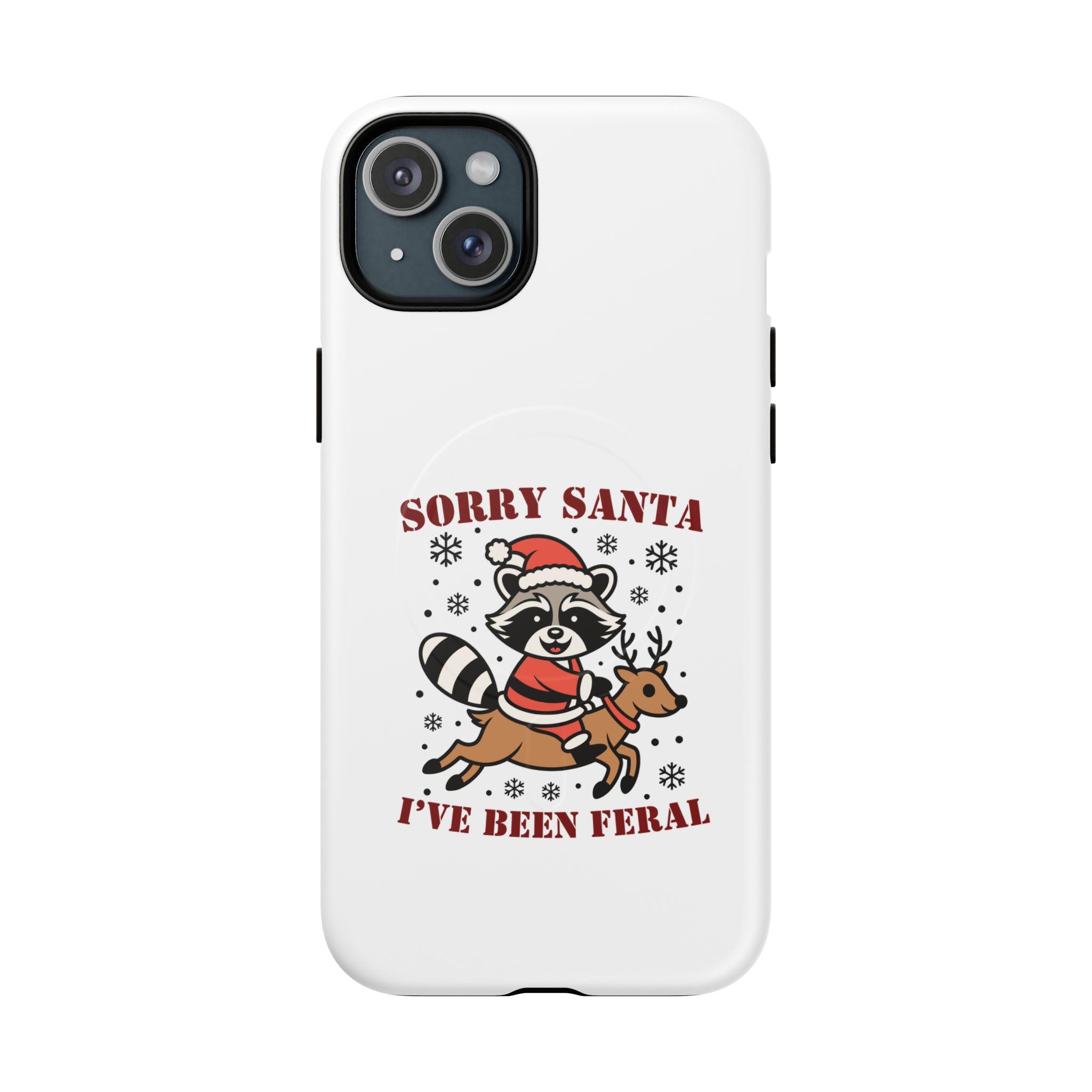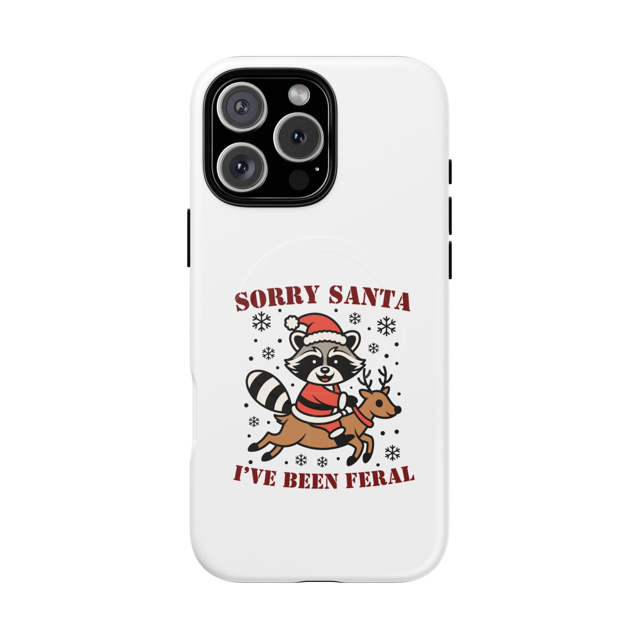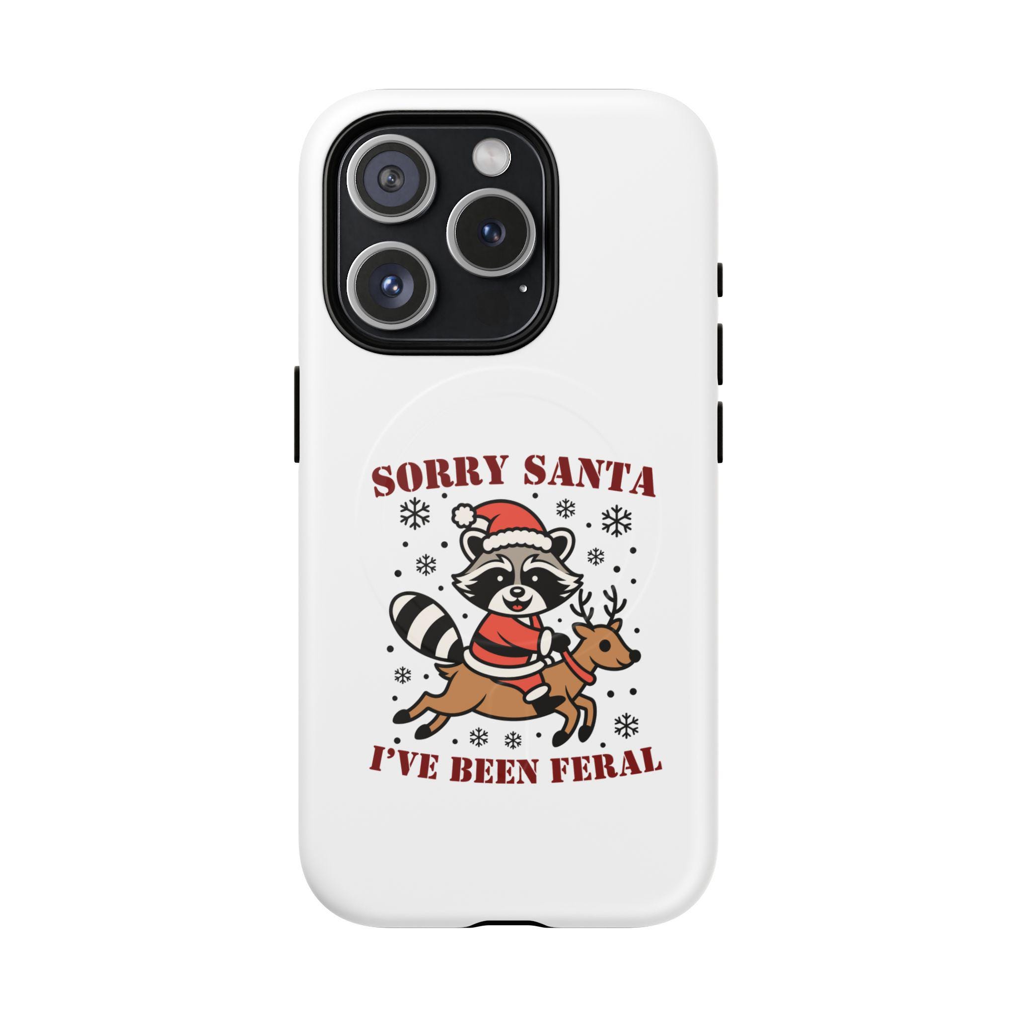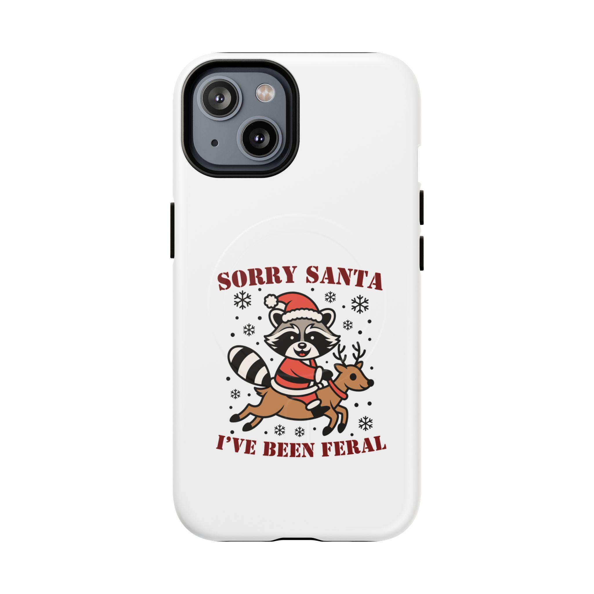 🎄 Sorry Santa, I’ve Been Feral iPhone Case – Funny Raccoon Christmas Tough Magnetic Case