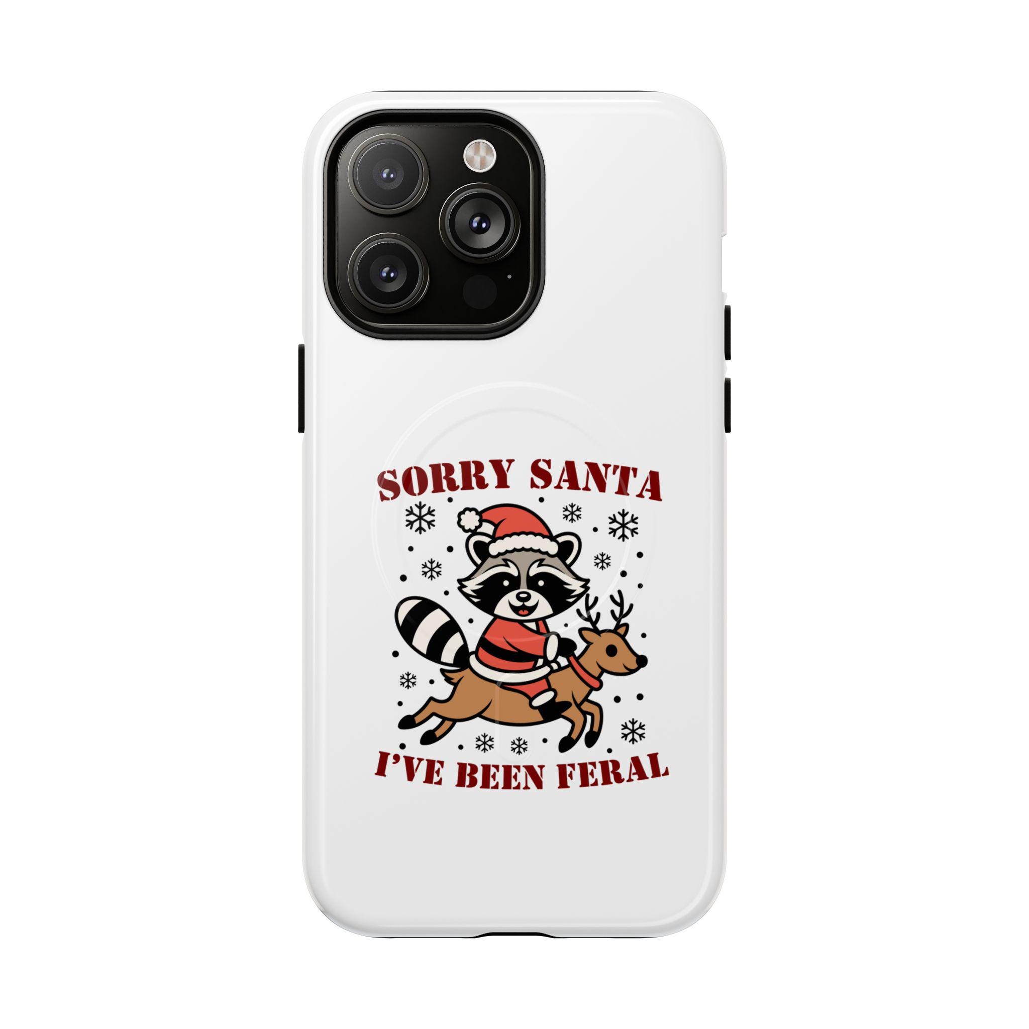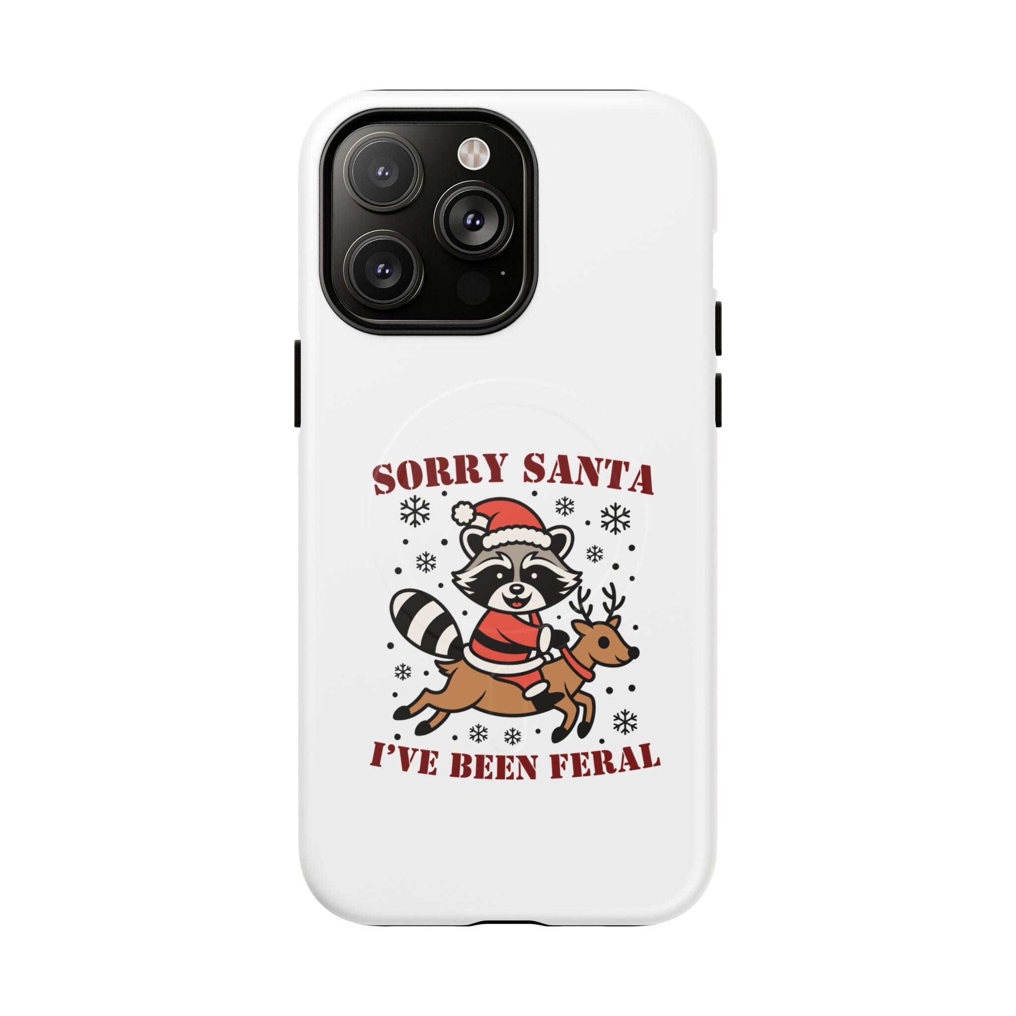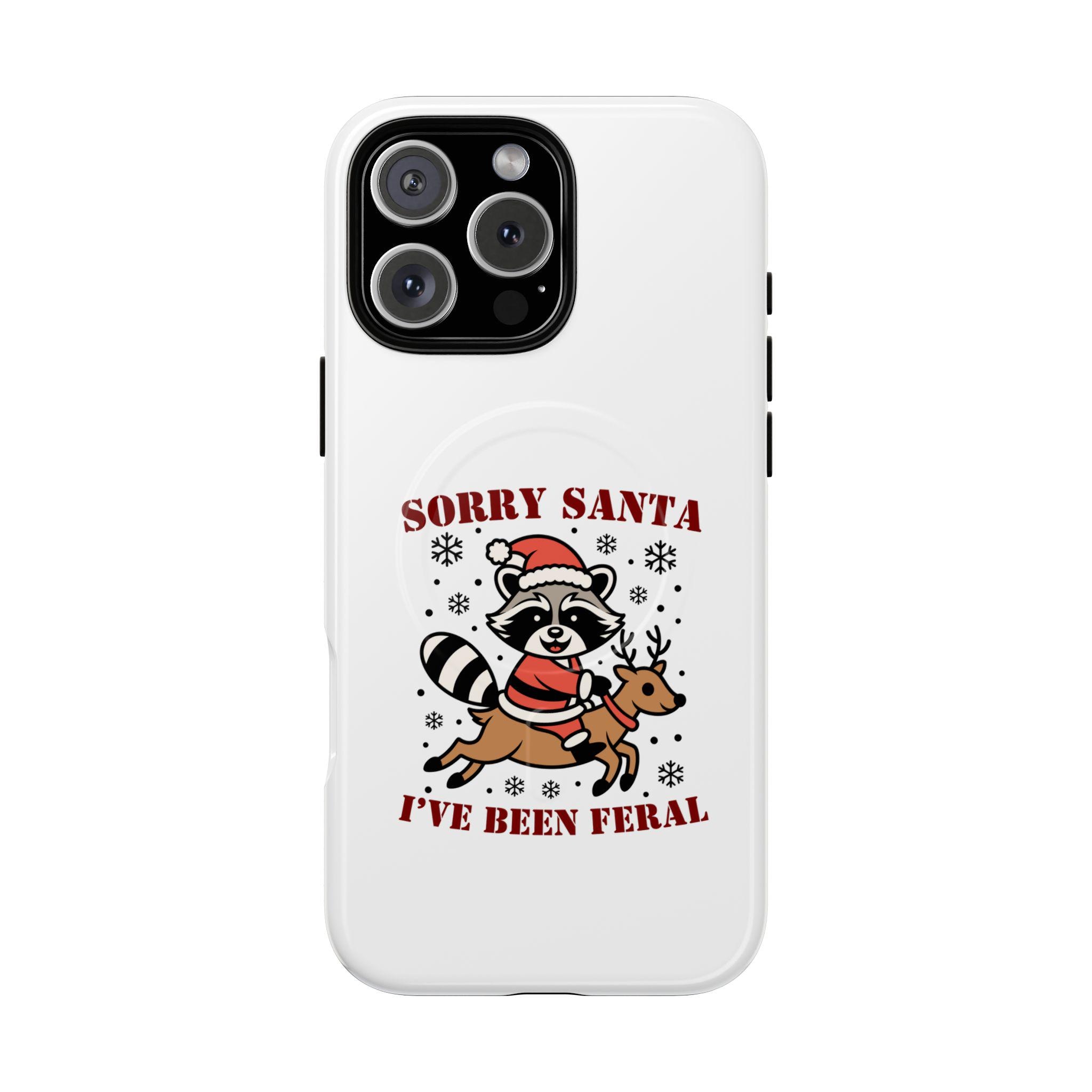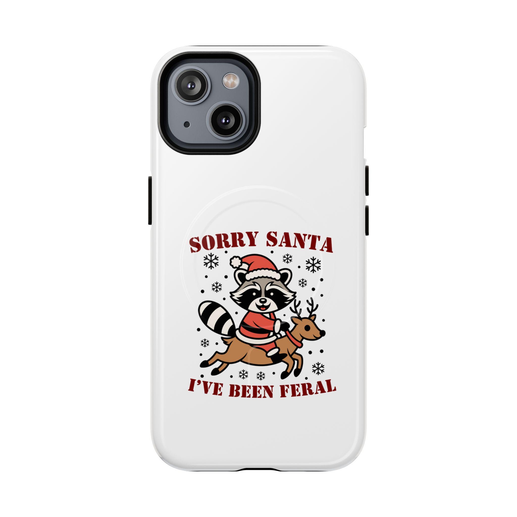 🎄 Sorry Santa, I’ve Been Feral iPhone Case – Funny Raccoon Christmas Tough Magnetic Case