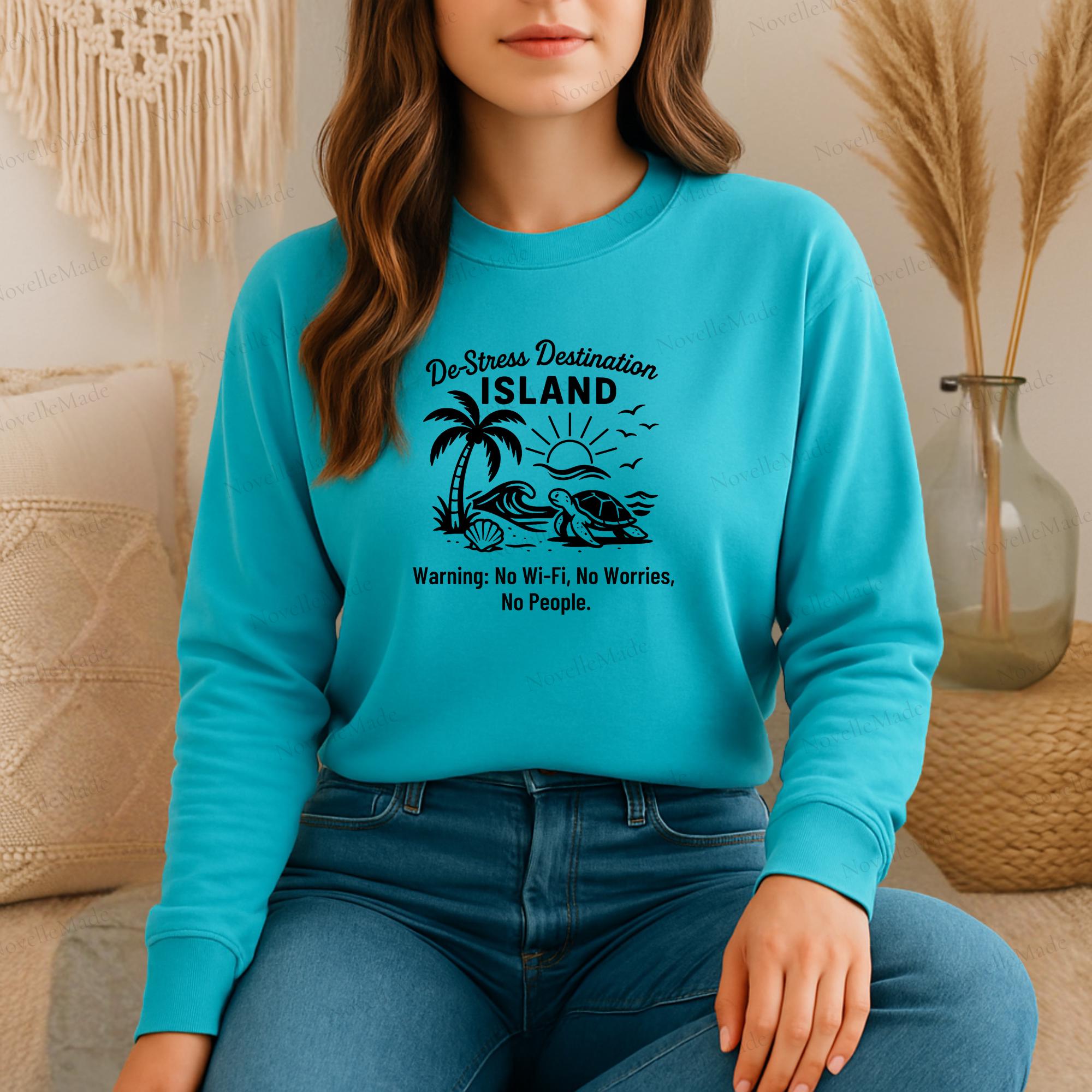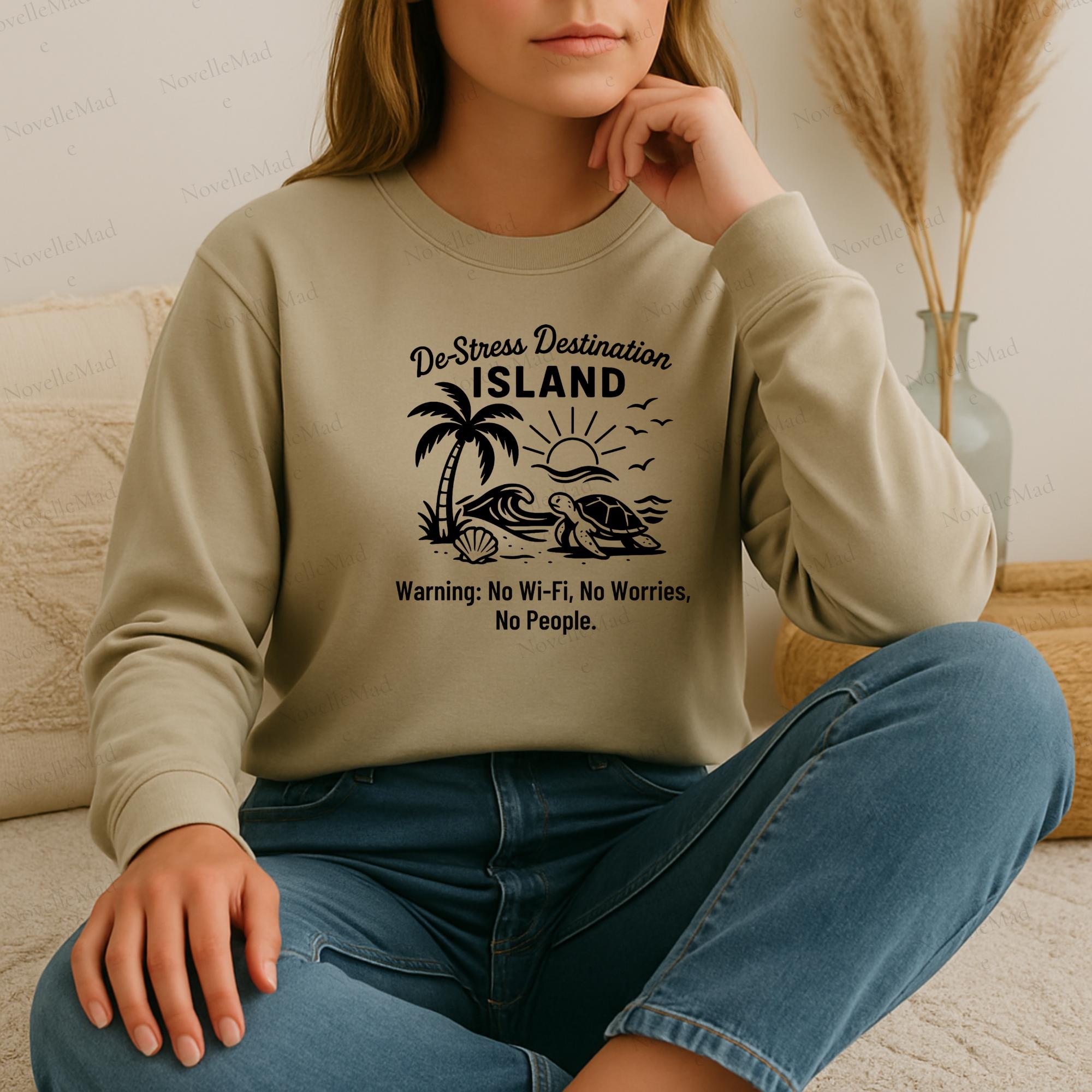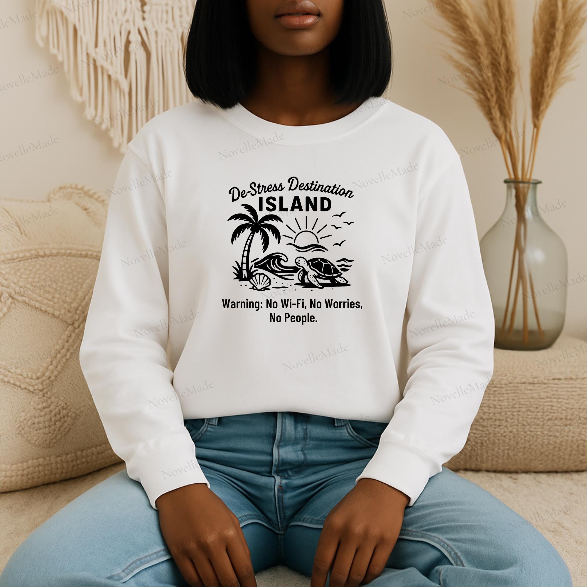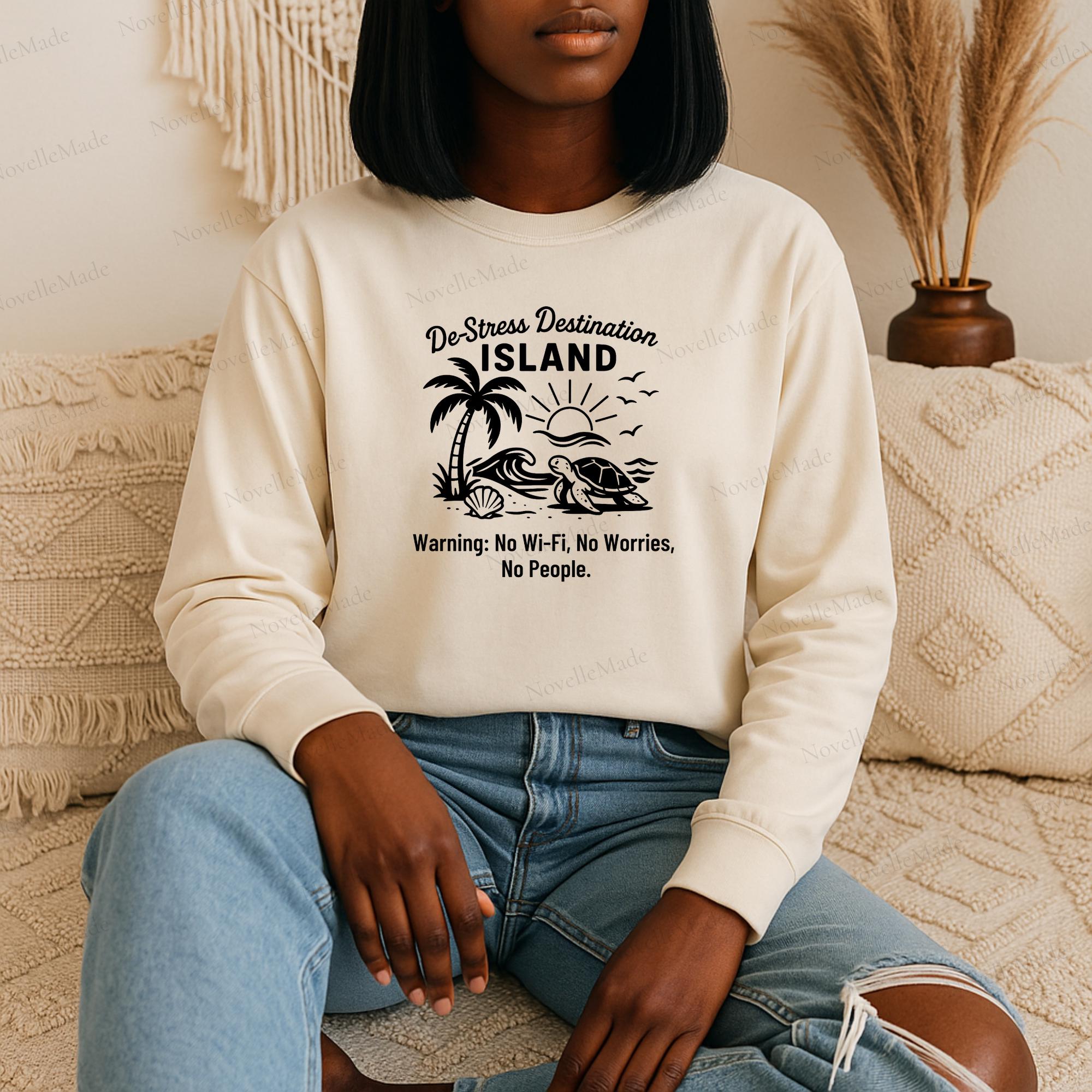 De-Stress Island Graphic Long Sleeve – No Wi-Fi, No People