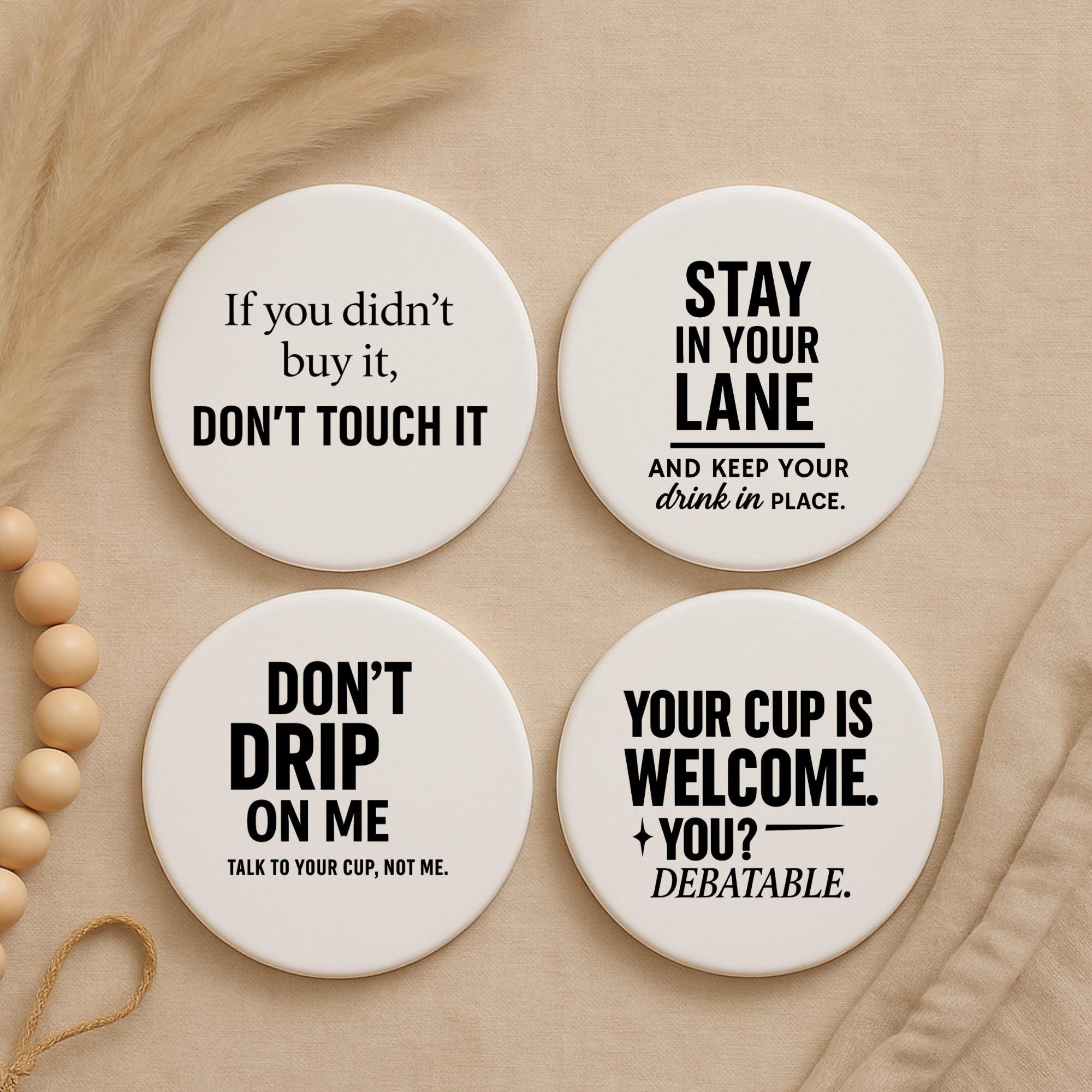 Funny Ceramic Coaster Set • Sassy "Don't Touch My Stuff" Quotes