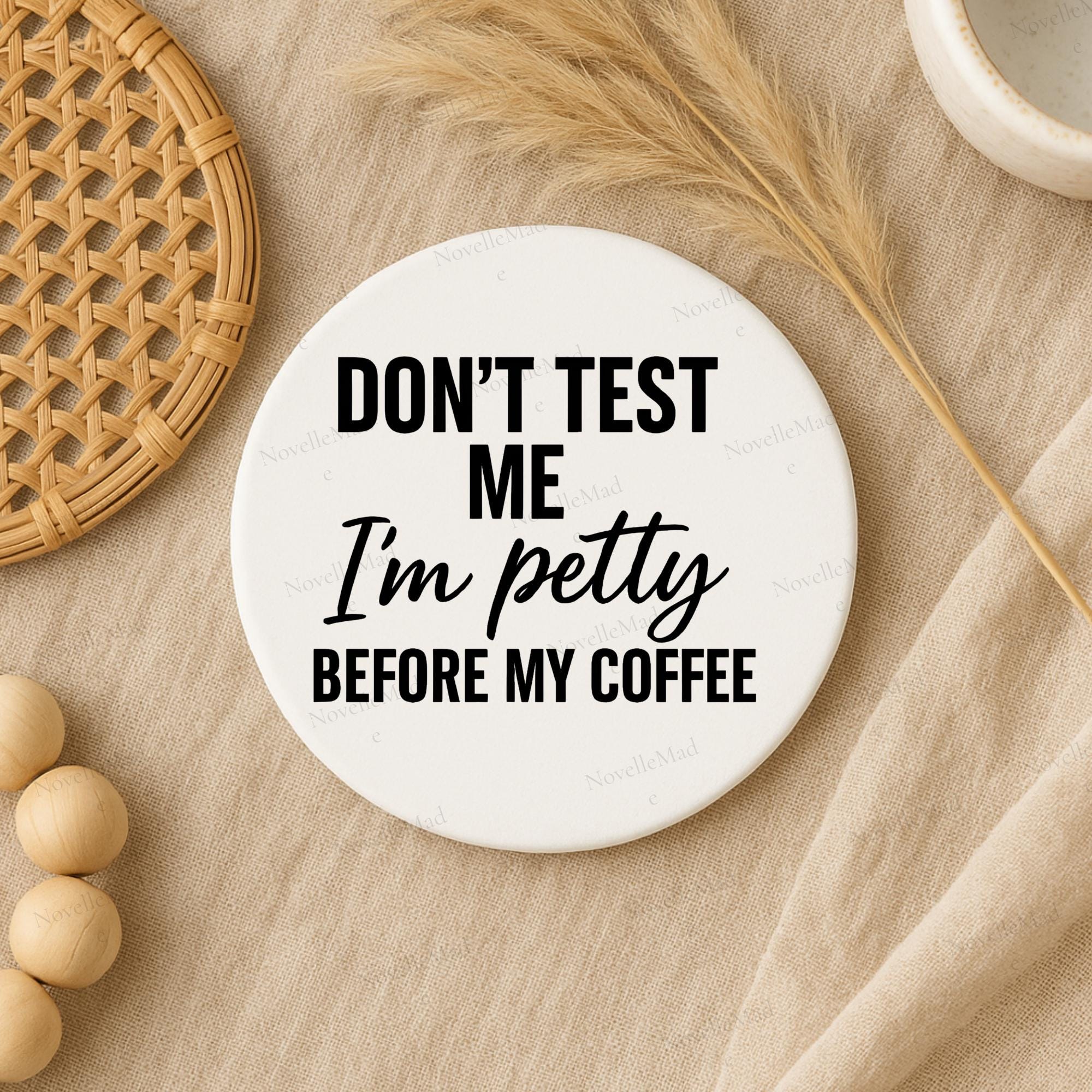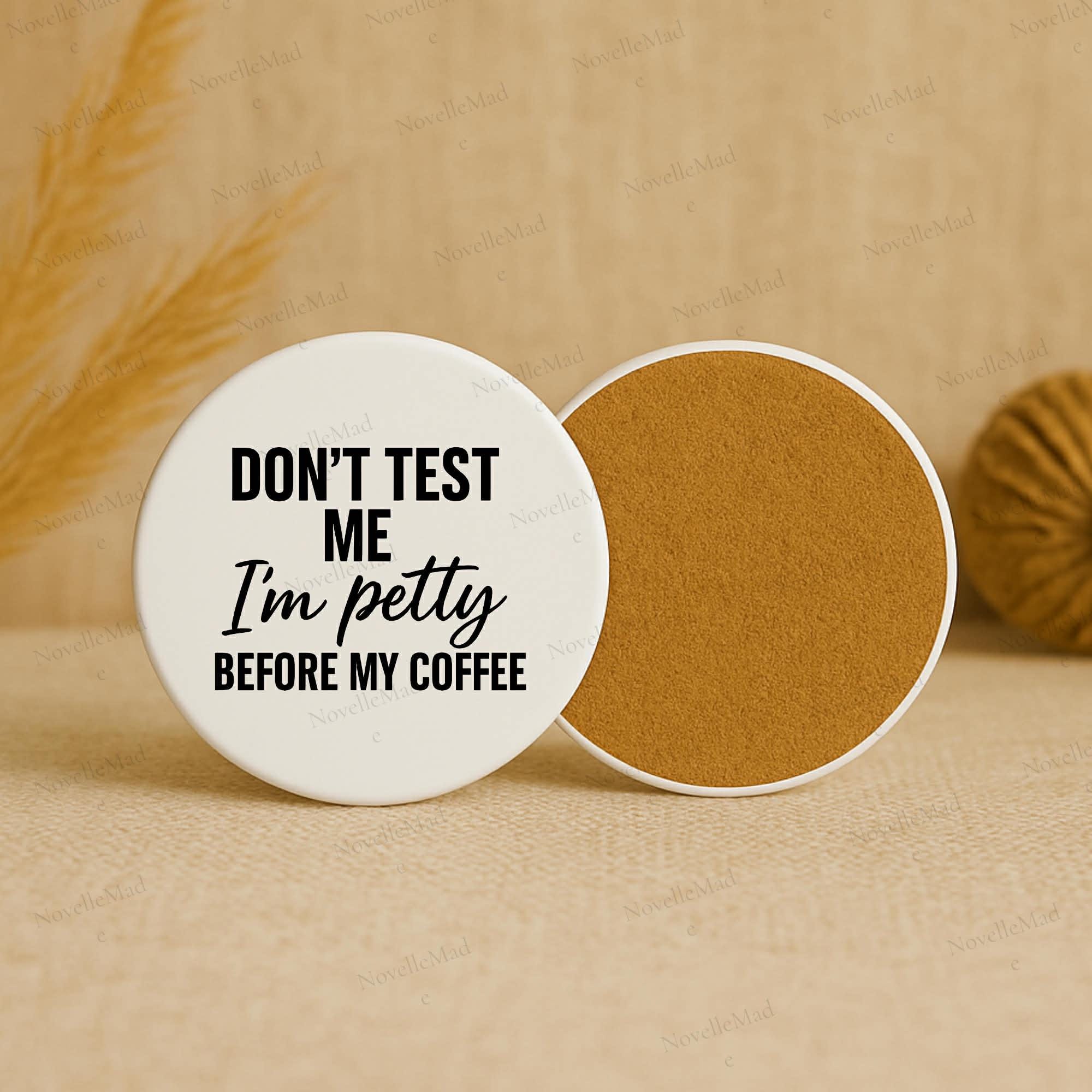 Funny Coffee Coaster Set • Petty Before Coffee • Ceramic Cork Coasters