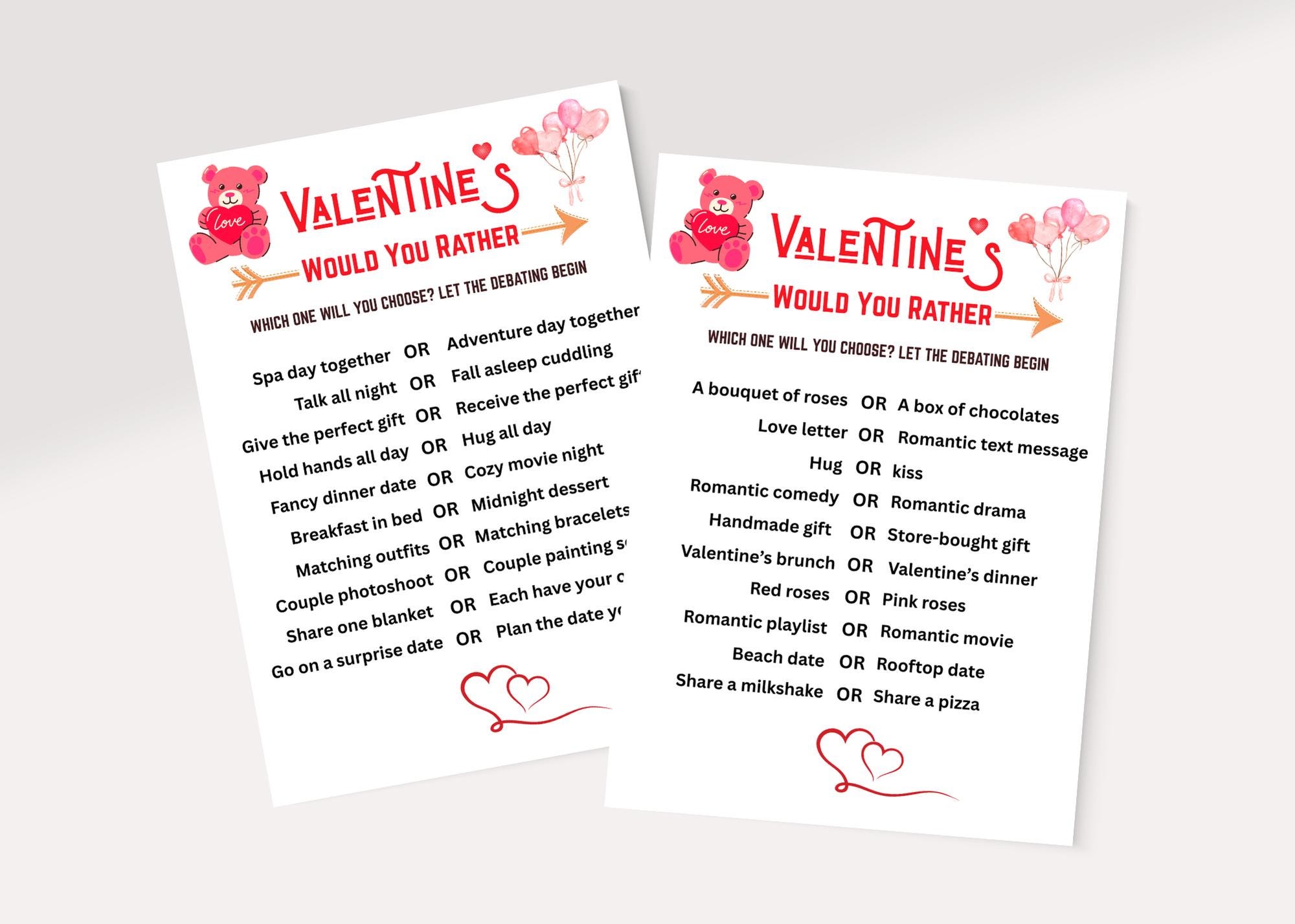 Valentine's Day Would You Rather Game, Printable Party Activity (PDF)