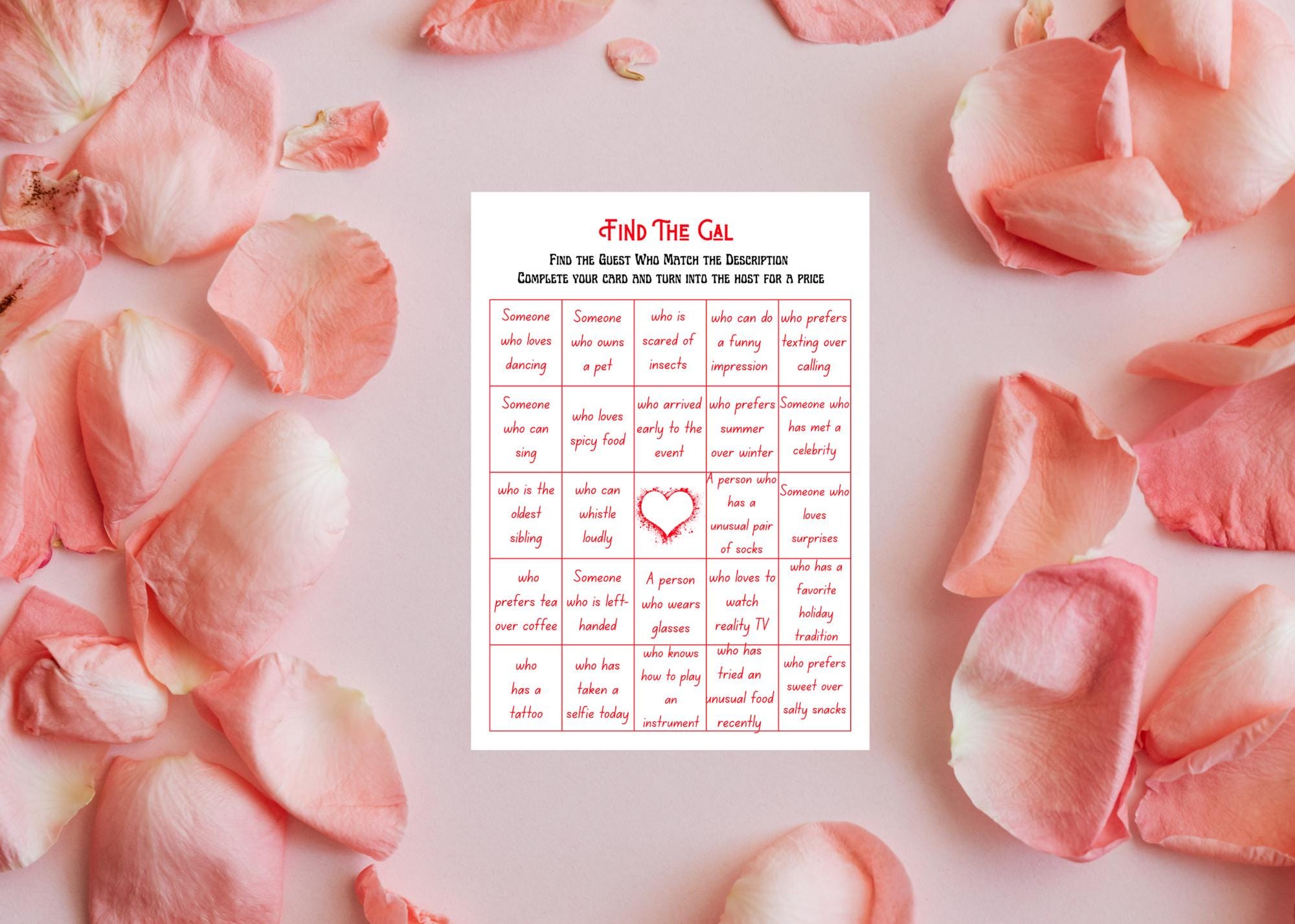Find The Gal Valentine Game, Valentine printable game, Valentine’s Day activity, printable Valentine game, Valentine game for kids, Valentine game for friends, Valentine scavenger game, Valentine puzzle game, Valentine school activity, Valentine party printable, instant download Valentine game, fun Valentine’s Day games, Valentine activity for classroom, Valentine group game, Valentine event printable, Valentine’s Day bingo card, Valentine bingo printable.