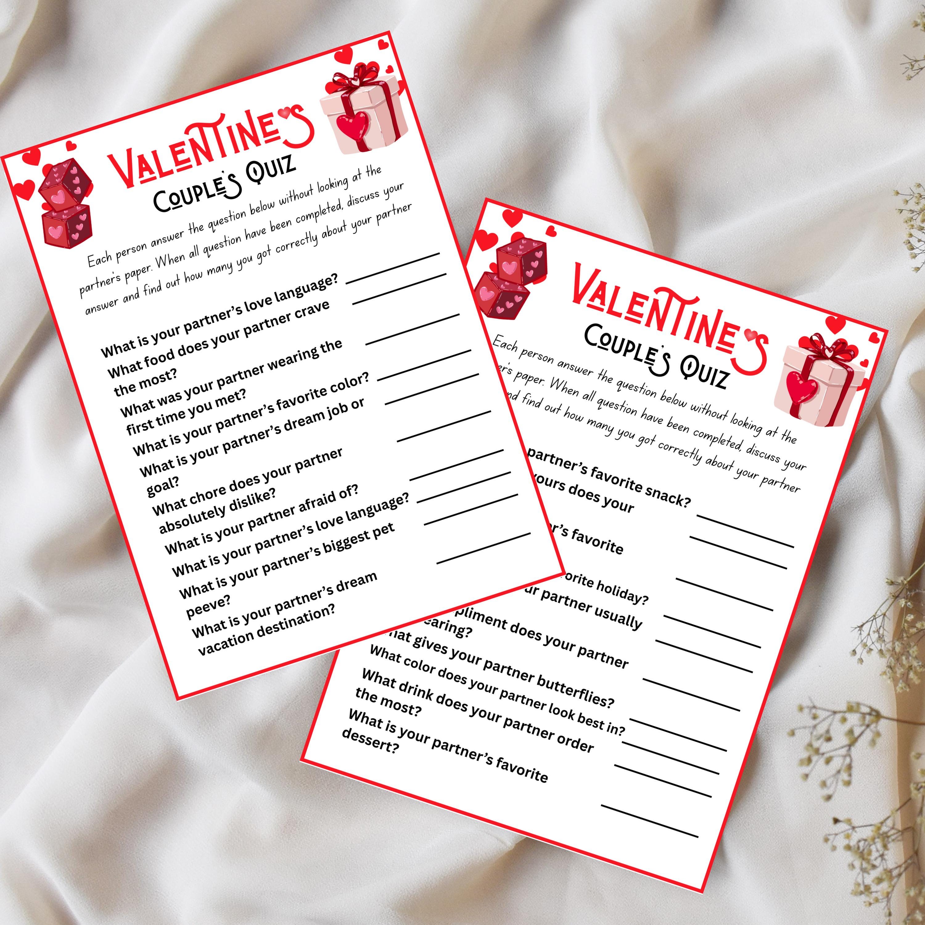 ✔ Couples Valentine Quiz Game Sheet
