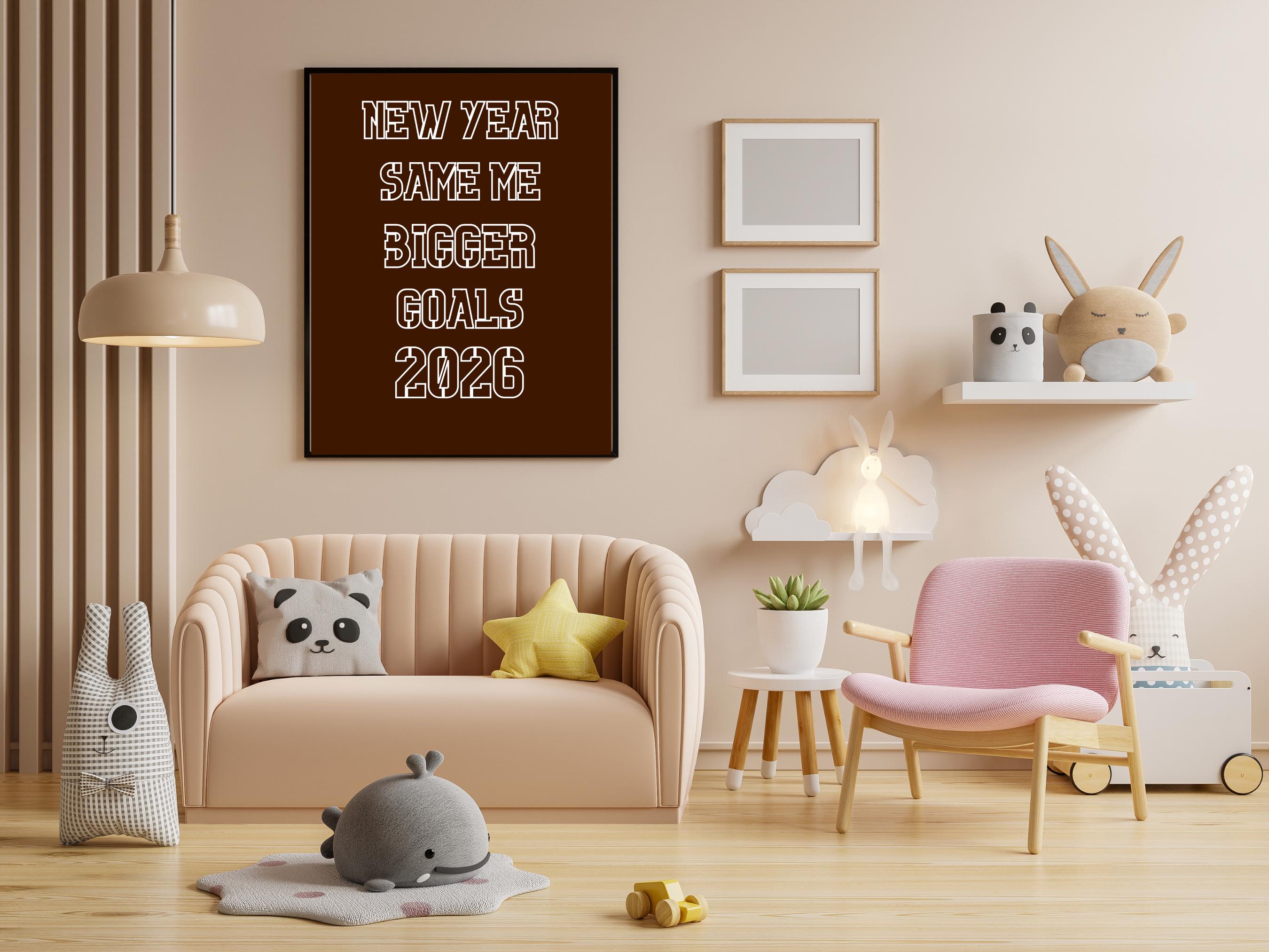Step into 2026 with motivation and style! This “NEW YEAR SAME ME BIGGER GOALS” Wall Art is perfect for keeping your goals top of mind while adding a modern, aesthetic touch to your space.