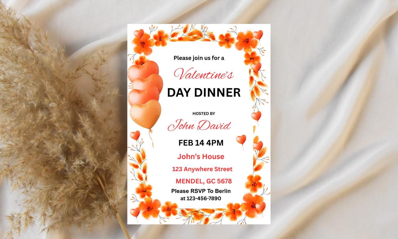 Editable Valentine's Day Dinner Invitation, Galentine's Day Invitation, Romantic Valentine's Day Dinner Invitation, Valentine's Day Invite