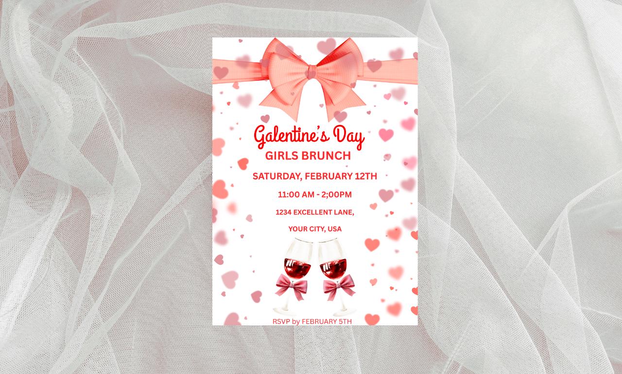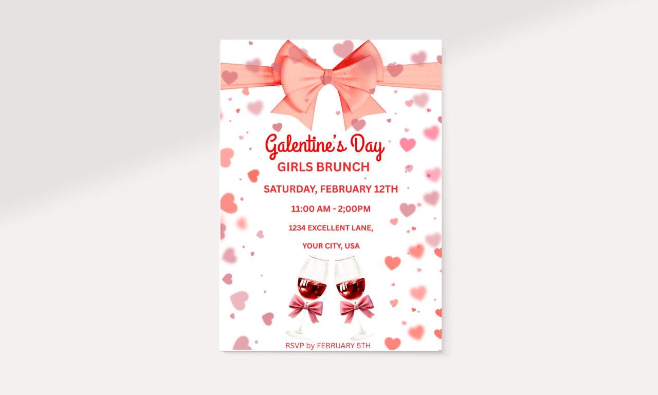 Celebrate friendship and fun with this Editable Galentine’s Day Invitation! Perfect for a Galentine’s Girls Night, brunch, wine night, or Valentine-themed party, this stylish Valentine’s Day Invitation Card sets the tone for a memorable night with your favorite girls.