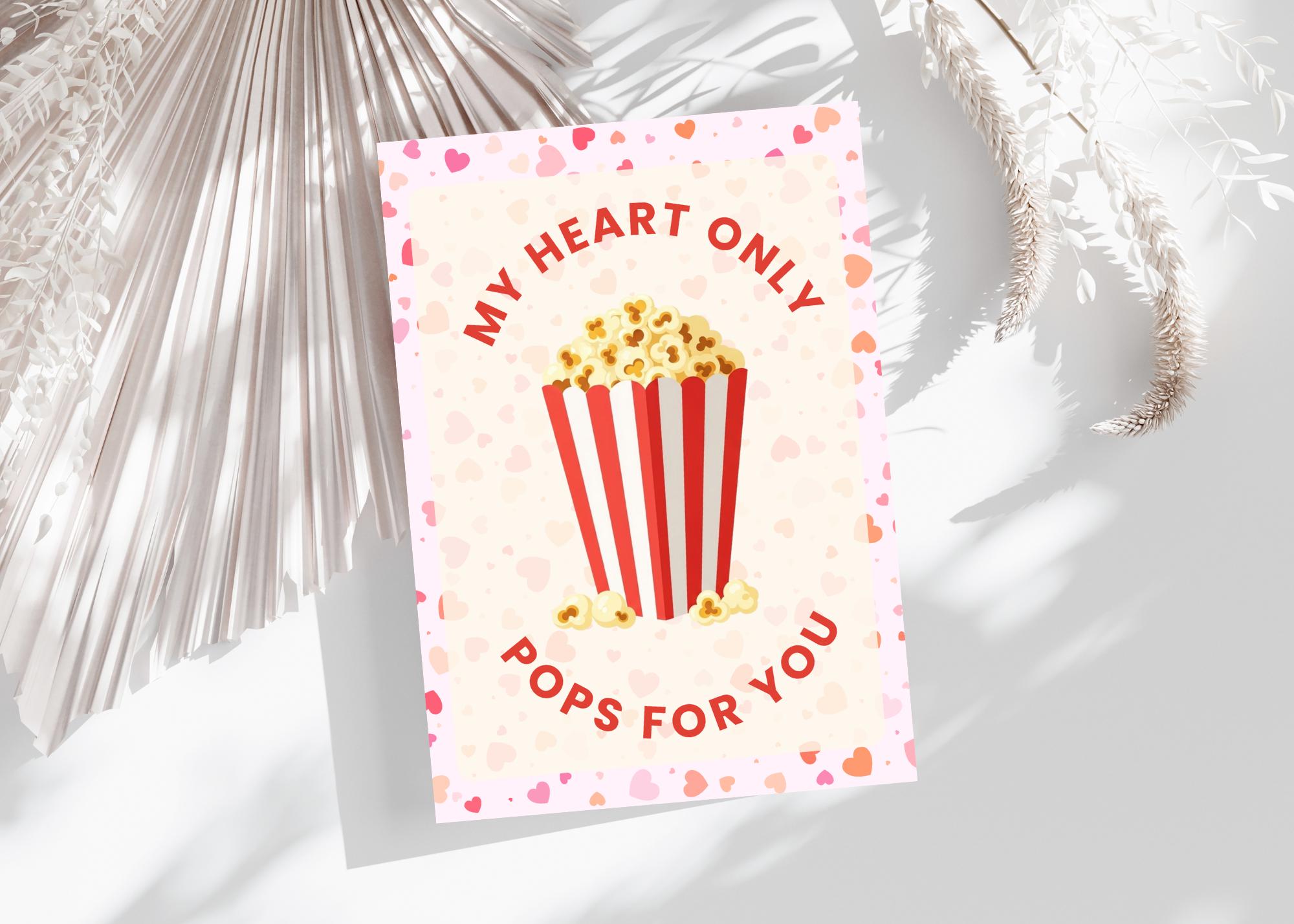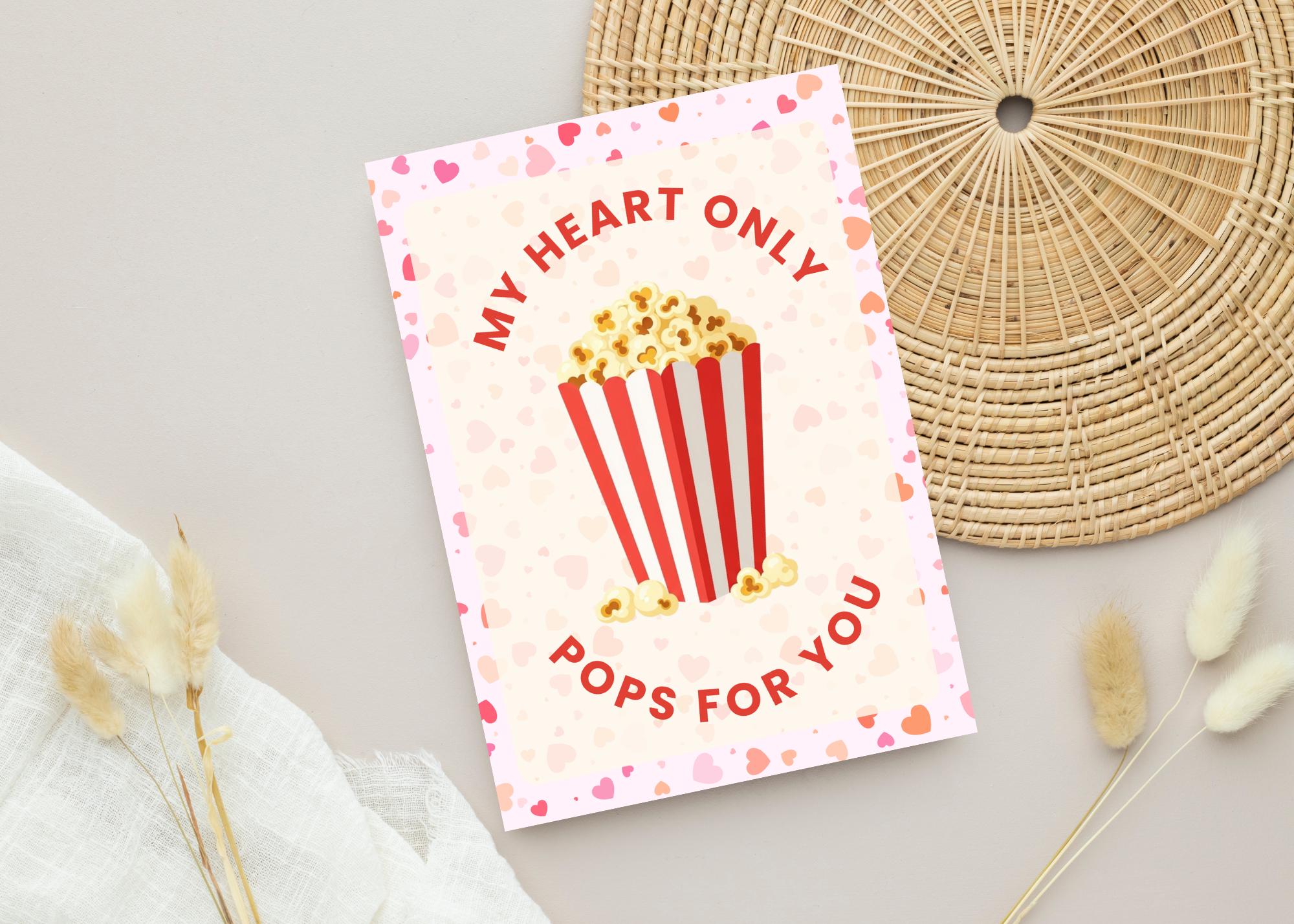 You Make My Heart Pop Valentine's Day Card, Popcorn Valentine Card, Printable You Make My Heart Pop Valentine Card, Popcorn Valentine Gift