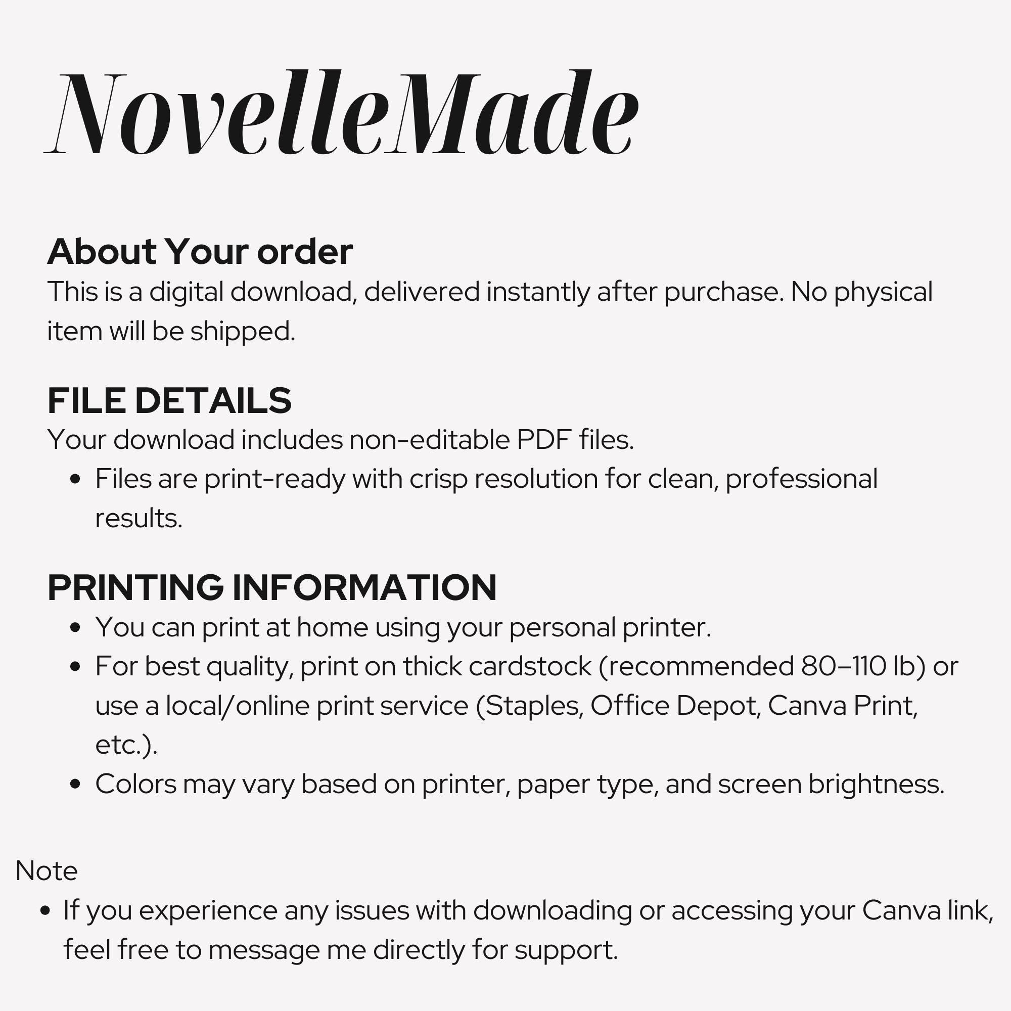 This is a digital product. No physical item will be shipped. Download immediately after purchase and print as many times as you like.