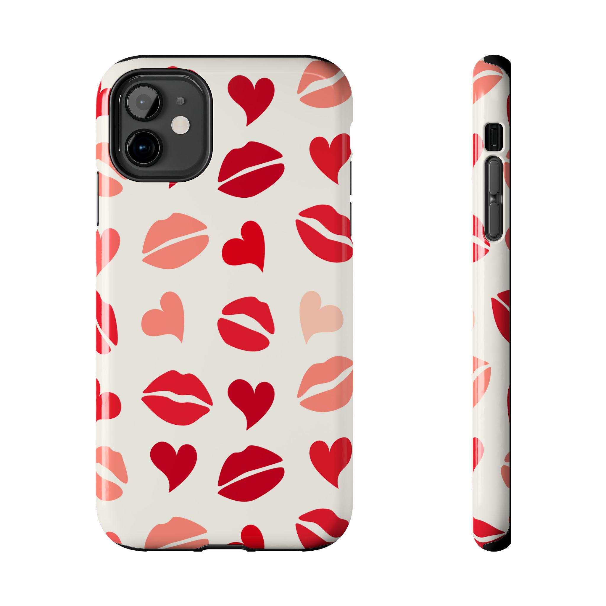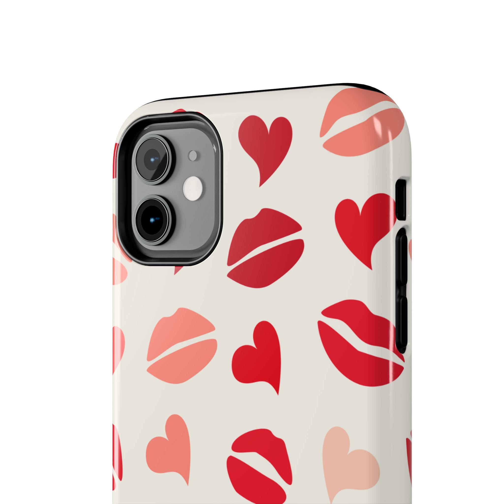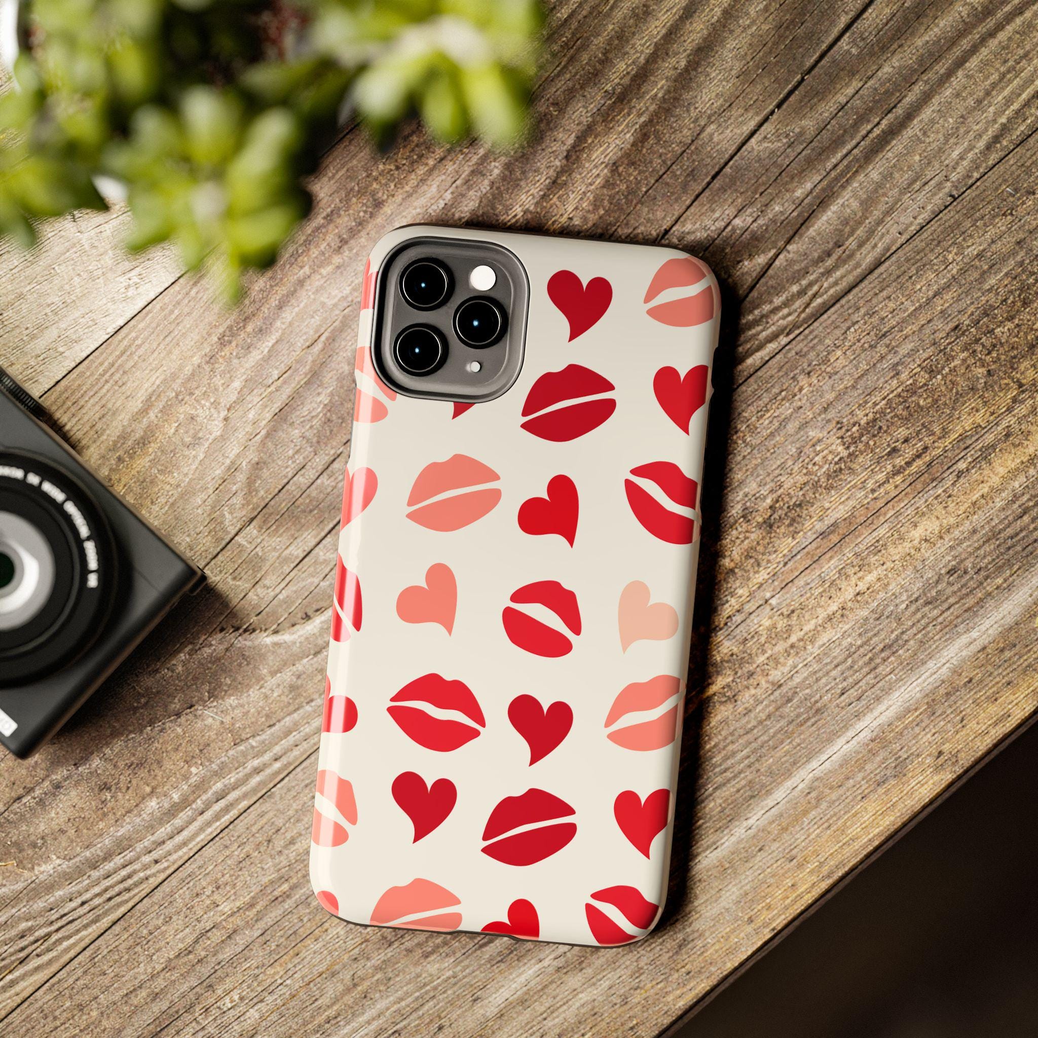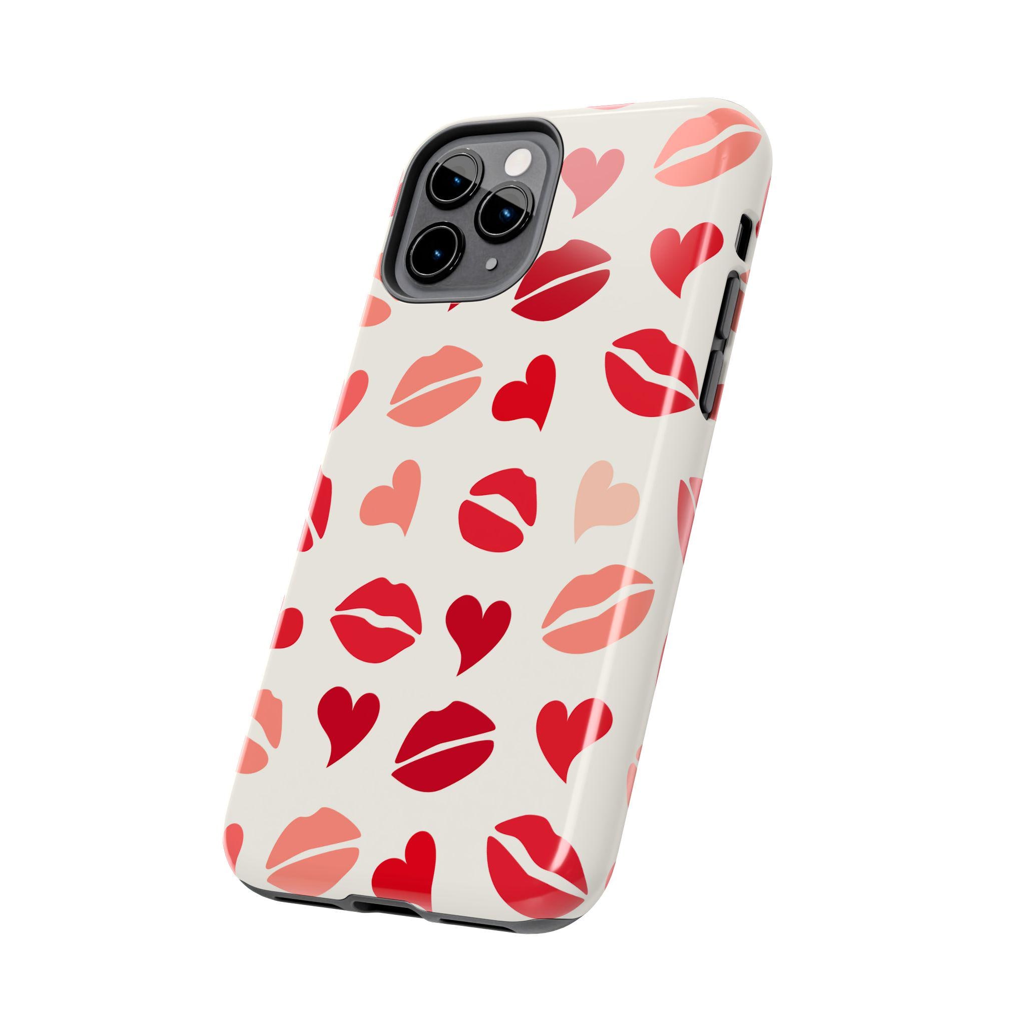 Lips and Hearts Pattern iPhone Case, Valentine's Day Gift