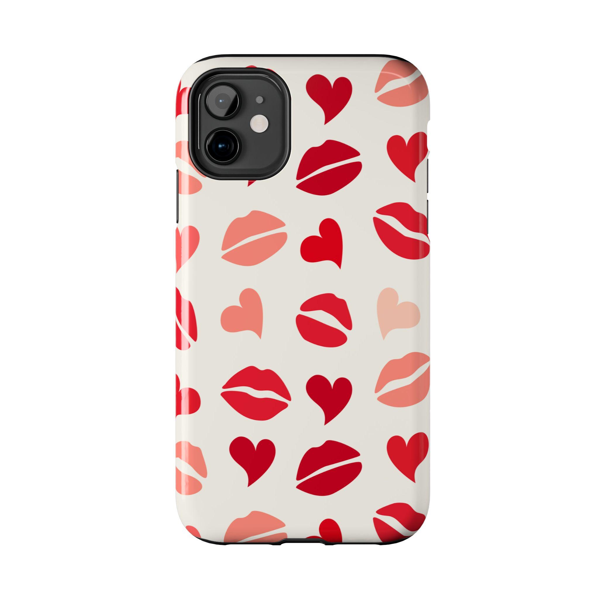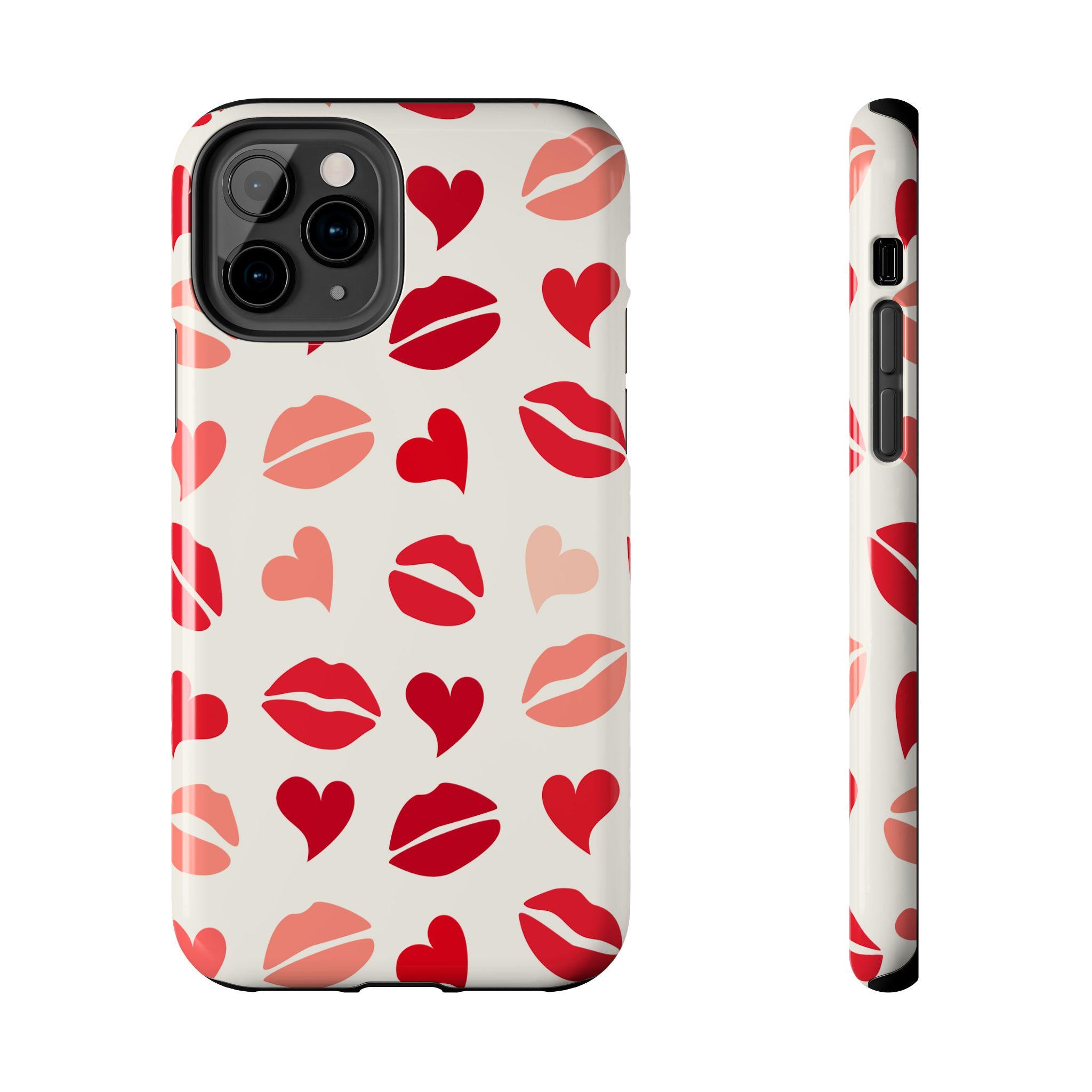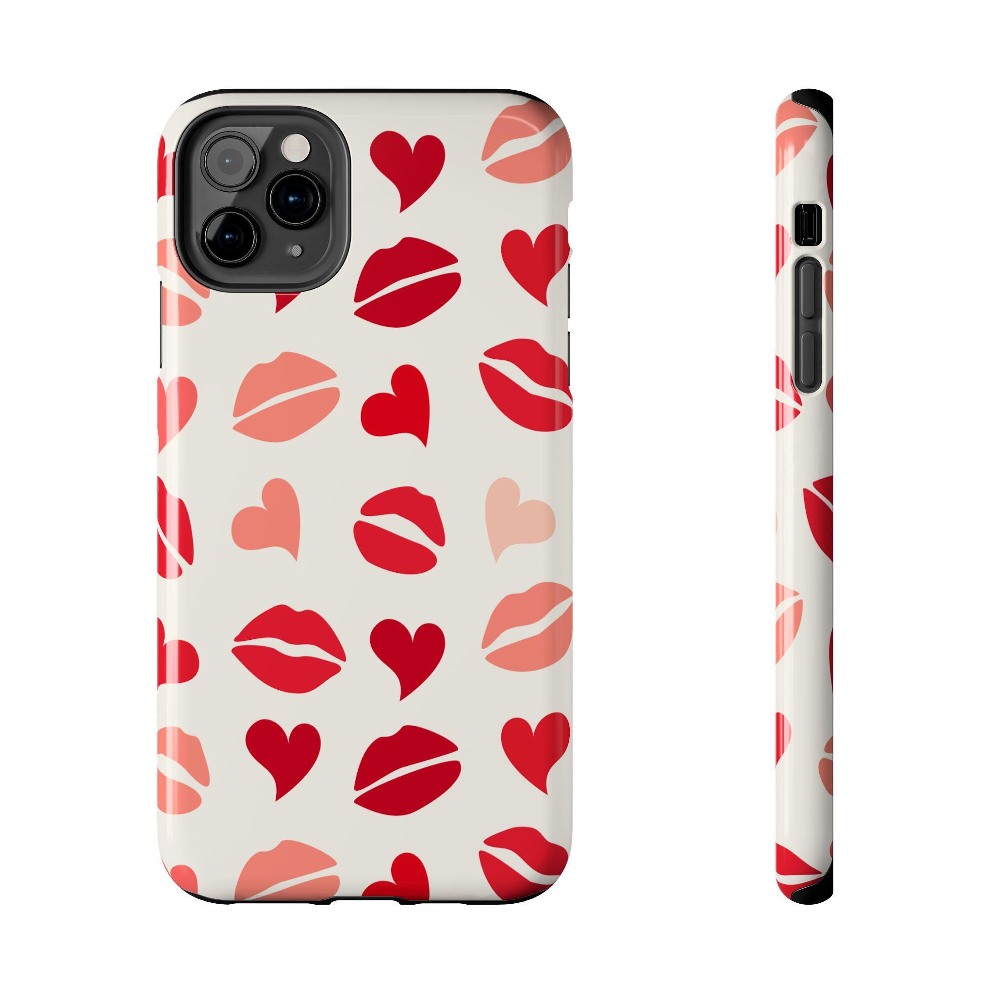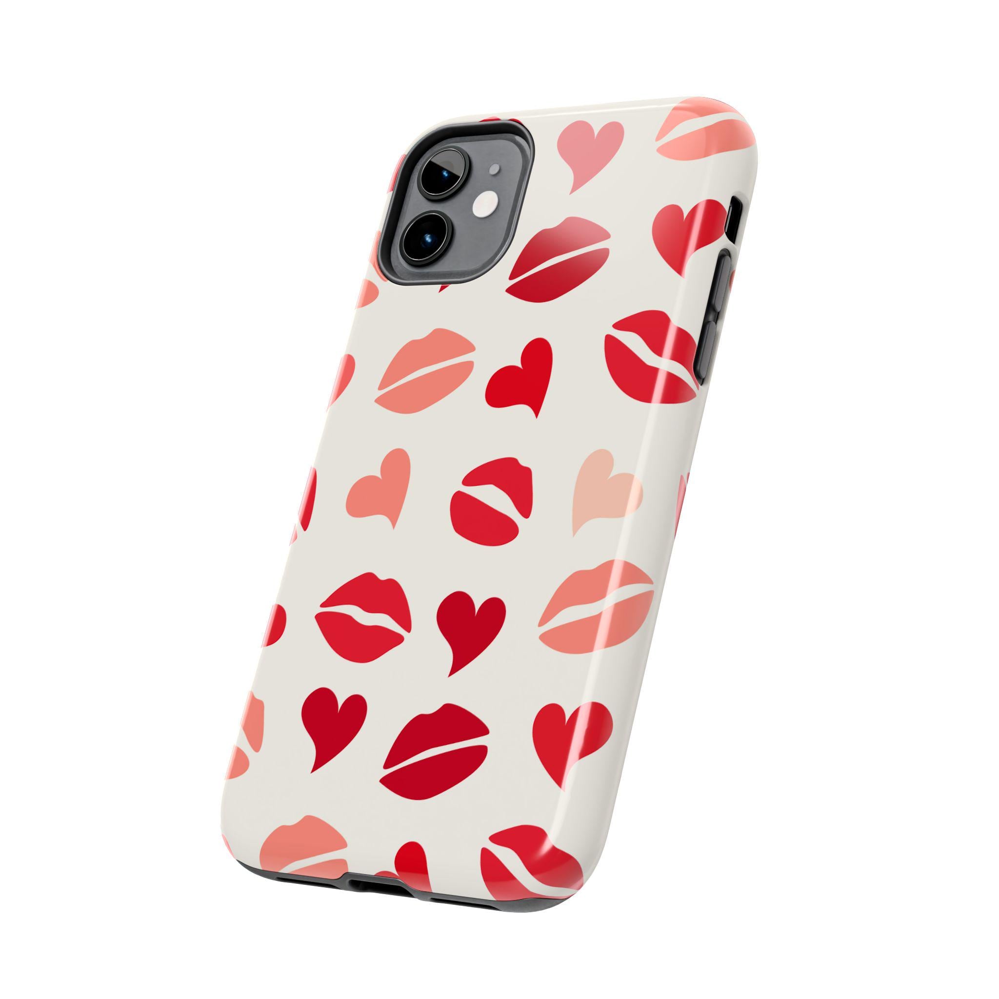 Lips and Hearts Pattern iPhone Case, Valentine's Day Gift