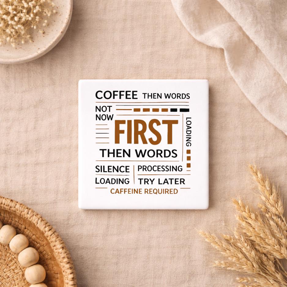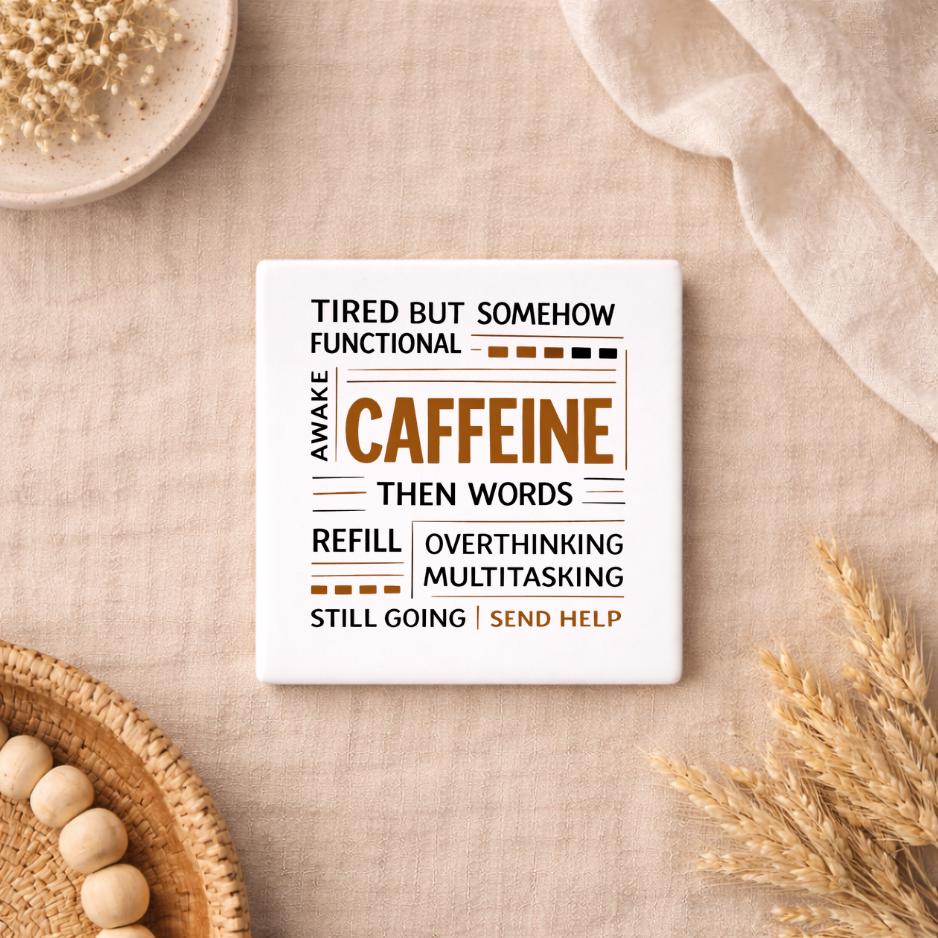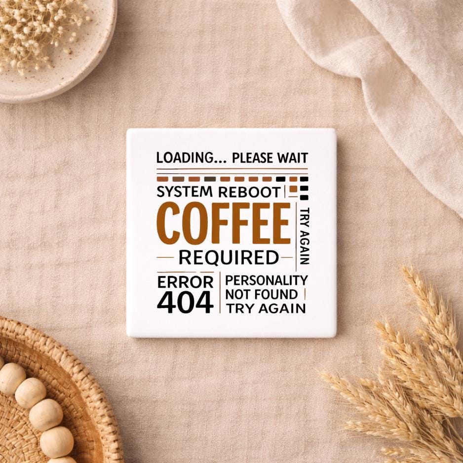 For the mornings that feel like a system reboot and the days powered entirely by coffee, this funny coffee coaster set brings humor and personality to your coffee bar decor. Designed with bold typography and tech inspired phrases, these ceramic coasters are perfect for anyone who runs on caffeine, deadlines, and controlled chaos.