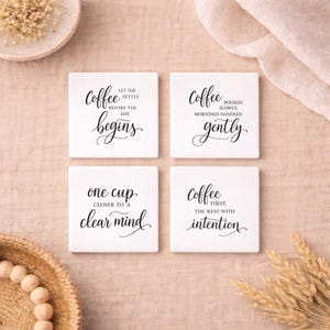 Funny Ceramic Coffee Coasters, Tech Humor Caffeine Quotes, Coffee Bar Decor Set