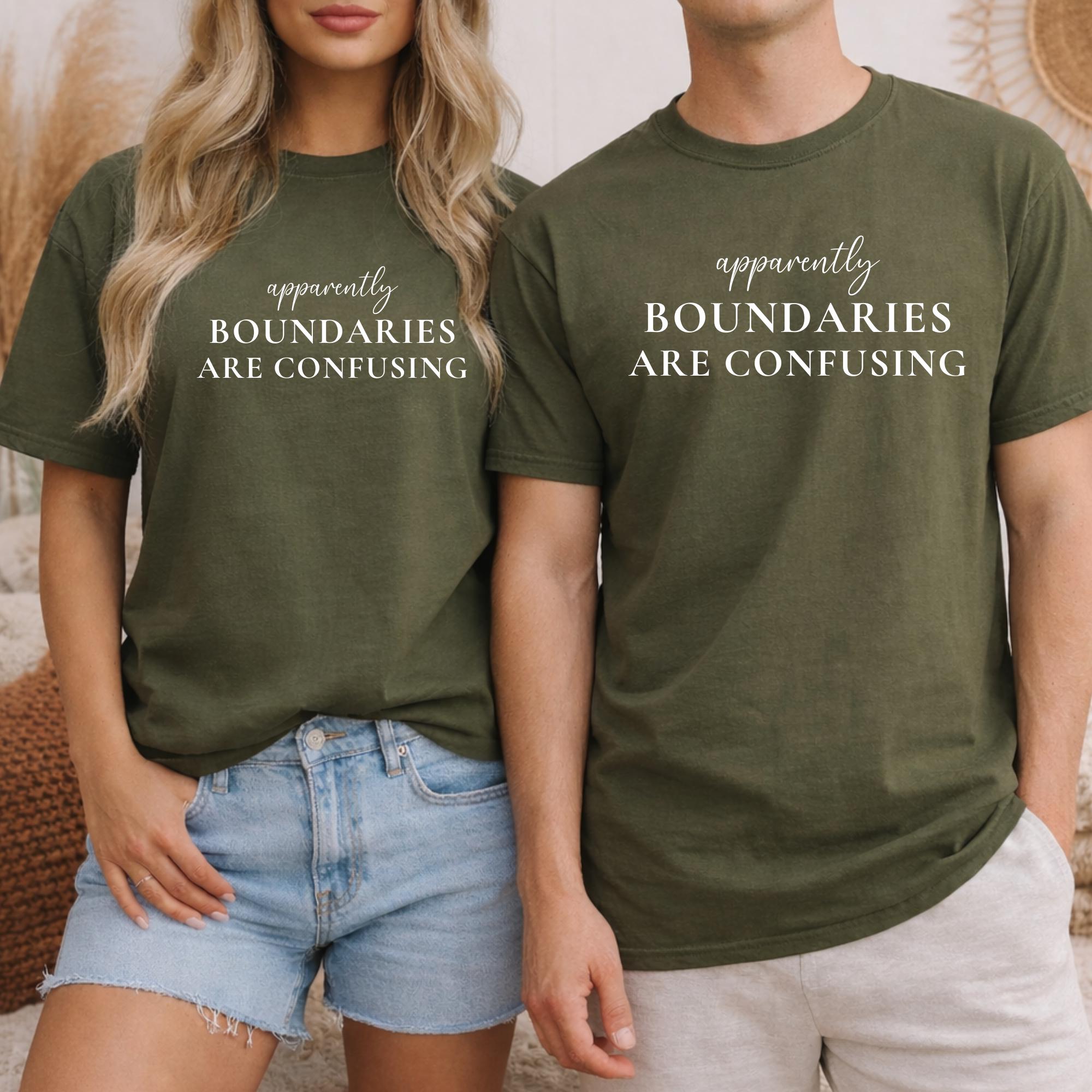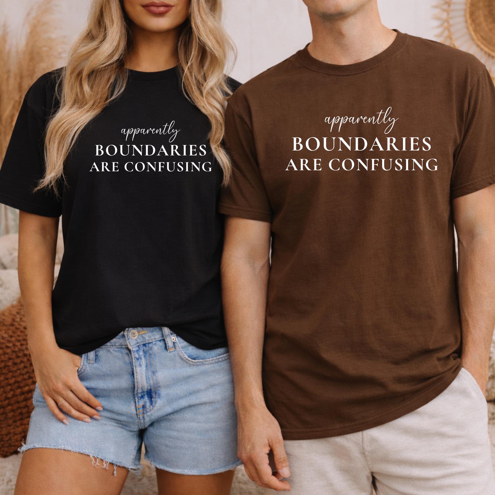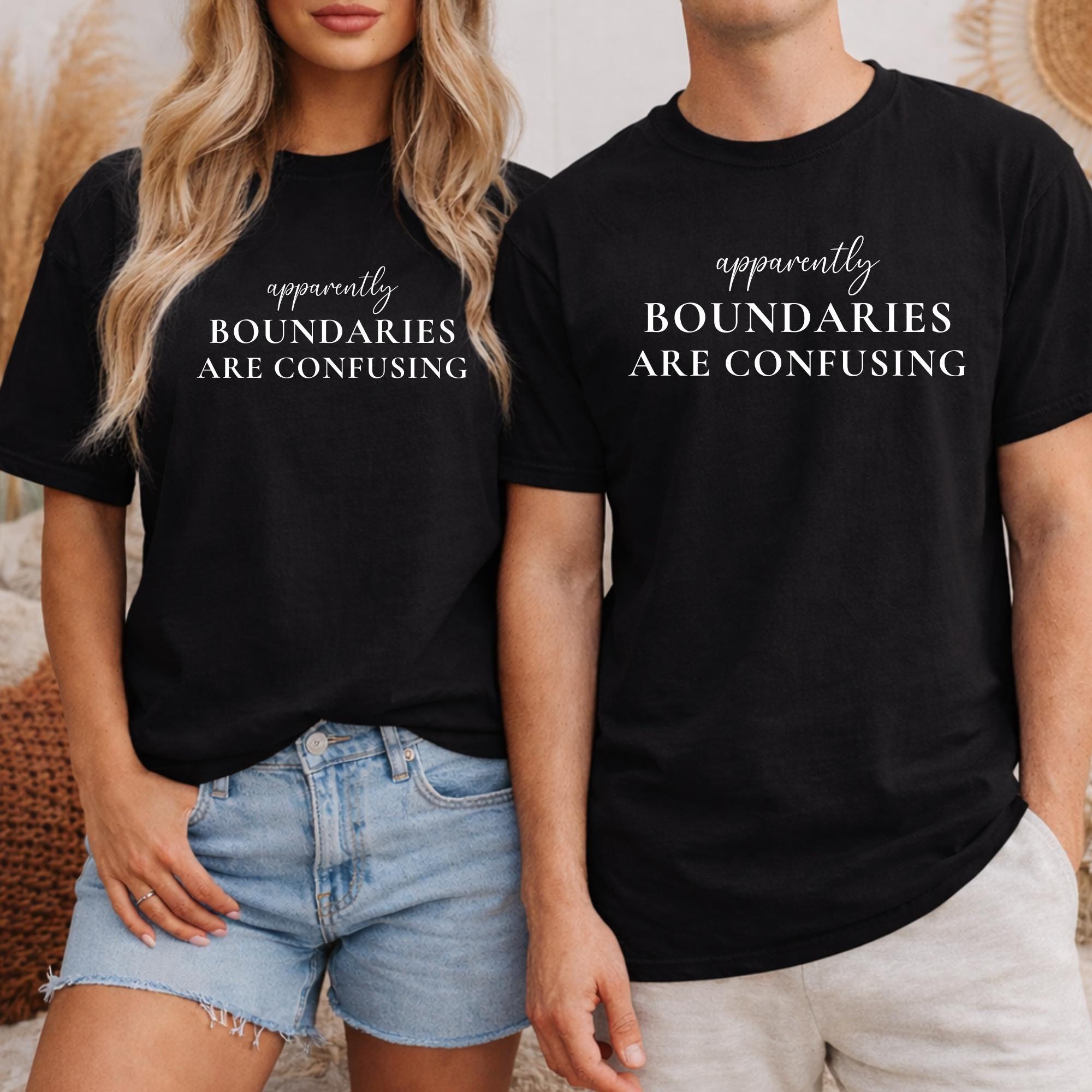 Make a confident and relatable statement with this bold Apparently Boundaries Are Confusing shirt. Designed for anyone who believes in protecting their peace and setting healthy boundaries, this design blends humor with empowerment.
