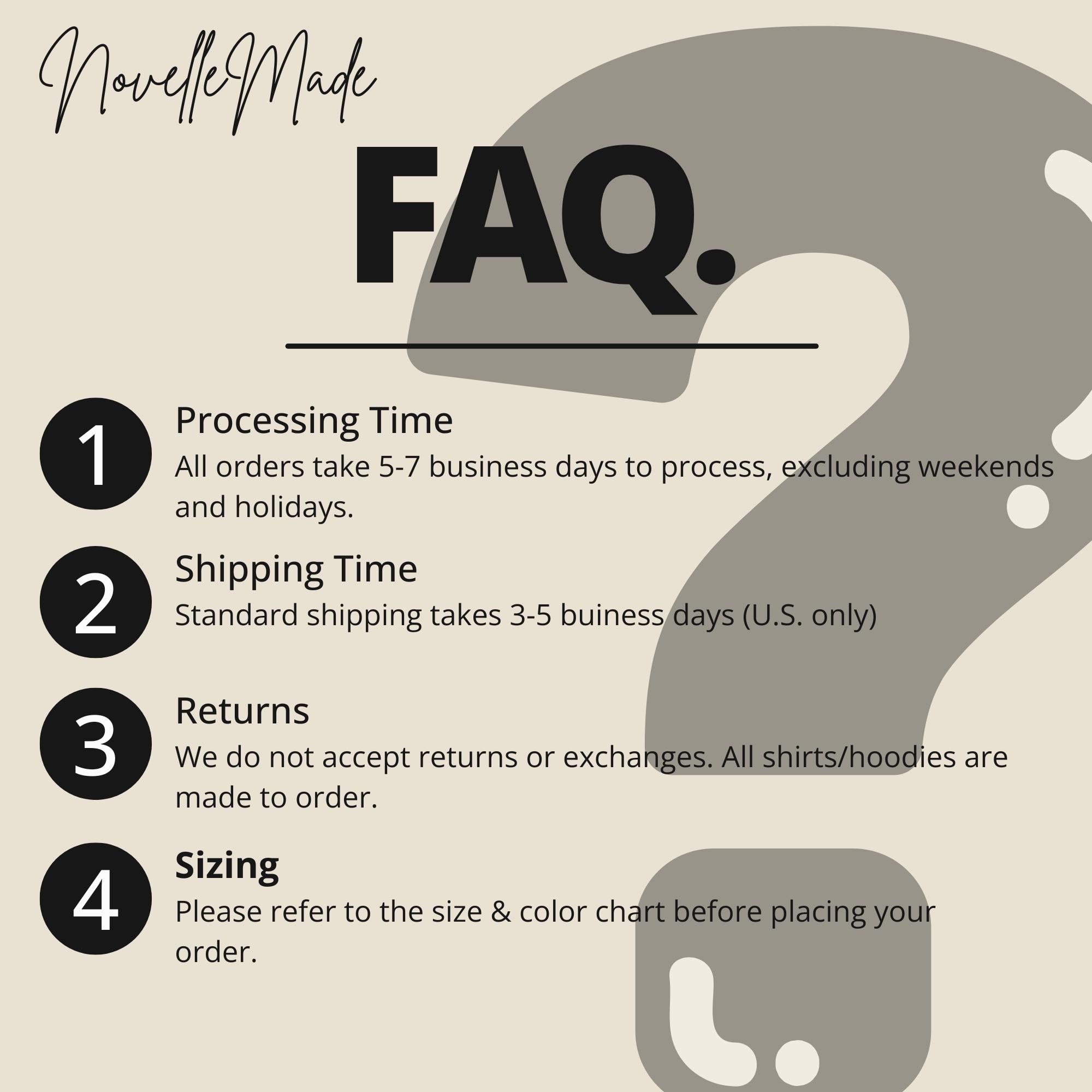 Because each item is made to order, we do not accept returns, exchanges, or cancellations.